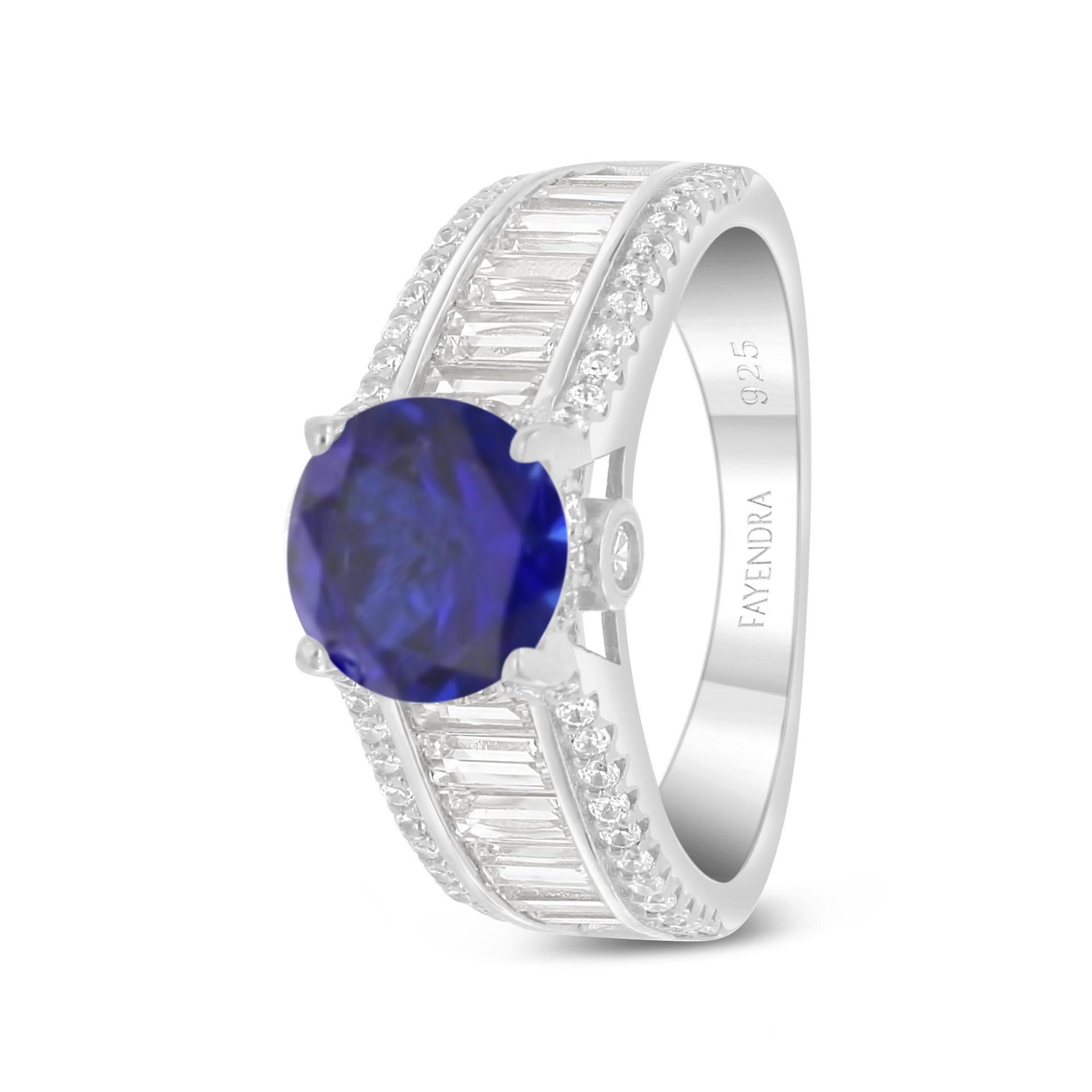 خاتم من الفضة الخالصة عيار 925 مطلي روديوم مرصع زفير كروندوم و فص ابيض