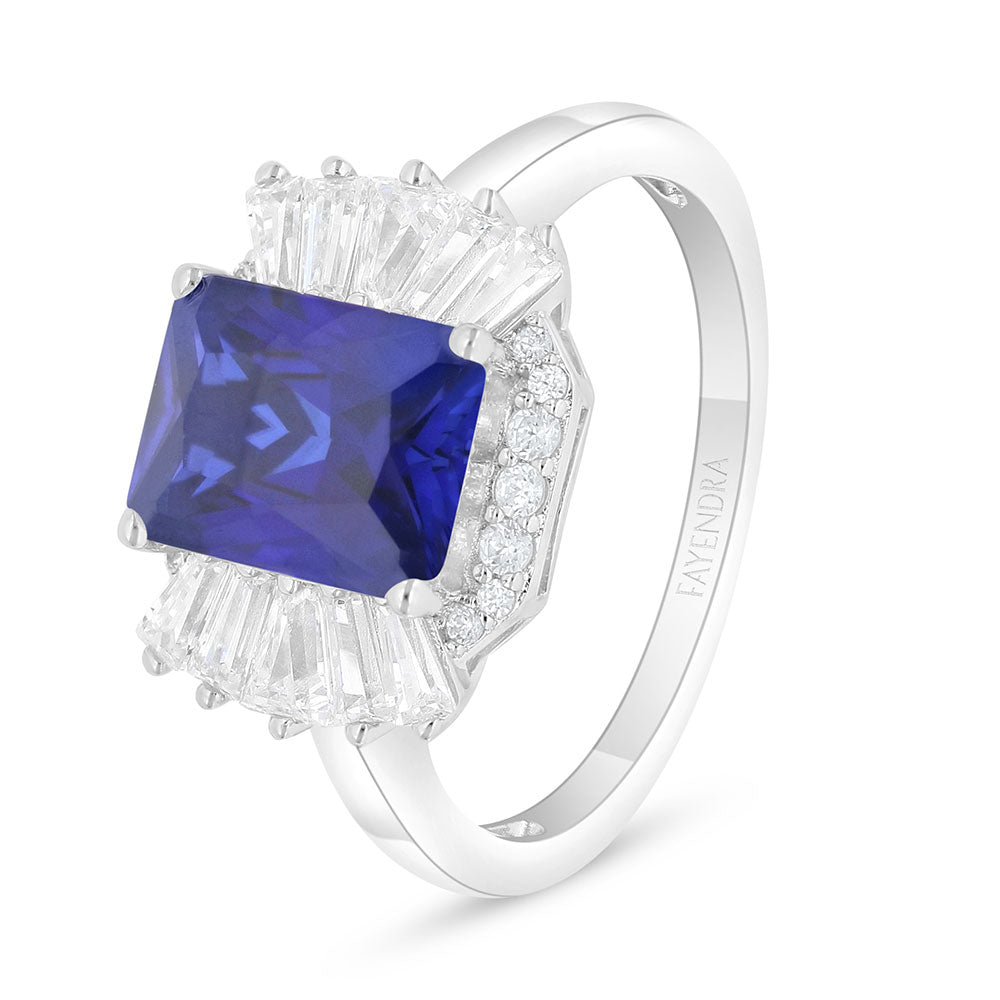 خاتم من الفضة الخالصة عيار 925 مطلي روديوم مرصع زفير كروندوم و فص ابيض
