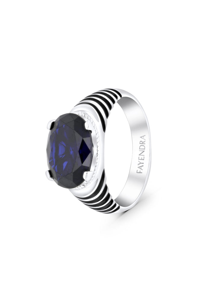 خاتم رجالي فضة عيار 925 مطلي روديوم مرصع احجار زفير كروندوم