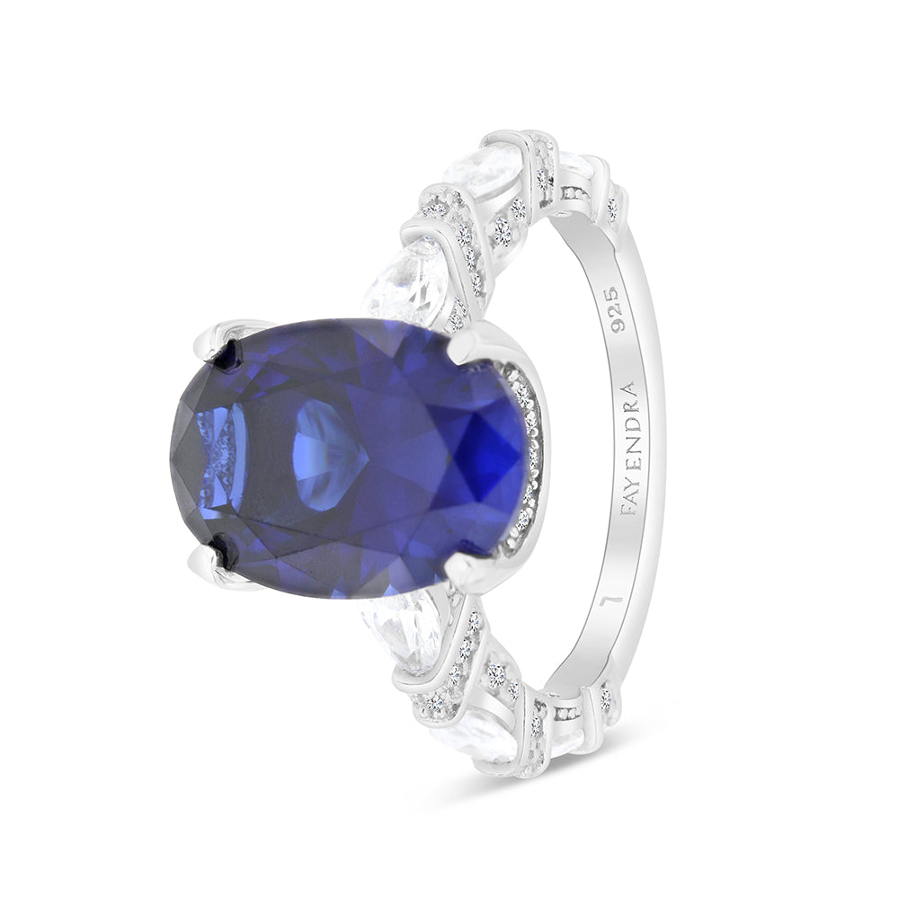 خاتم من الفضة الخالصة عيار 925 مطلي روديوم مرصع زفير كروندوم و فص ابيض