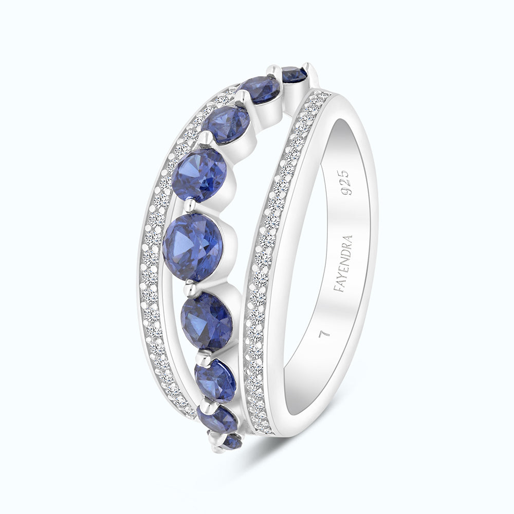 خاتم من الفضة الخالصة عيار 925 مطلي روديوم زركون تنزانيت و فص ابيض