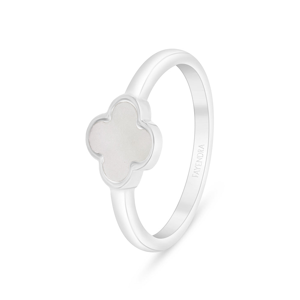 خاتم من الفضة الخالصة عيار 925 مطلي روديوم مرصع صدف ابيض