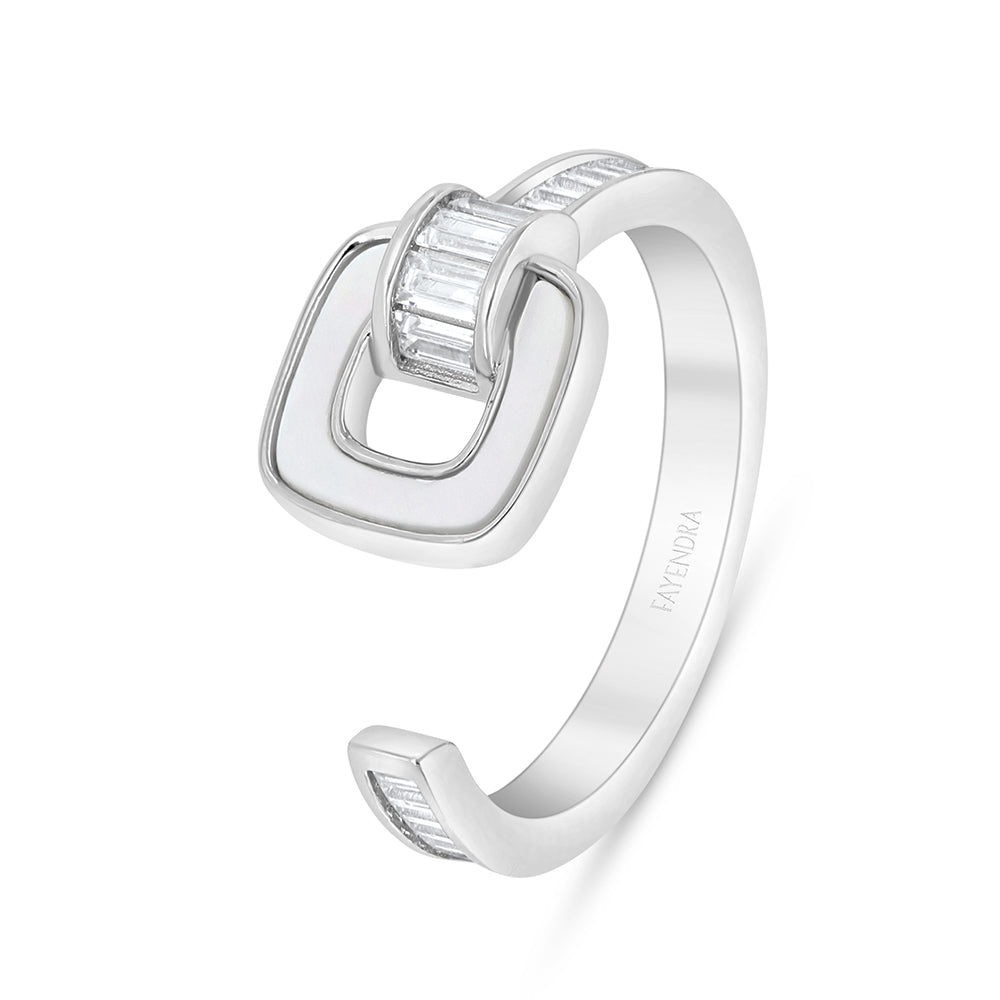خاتم من الفضة الخالصة عيار 925 مطلي روديوم مرصع صدف ابيض و فص ابيض