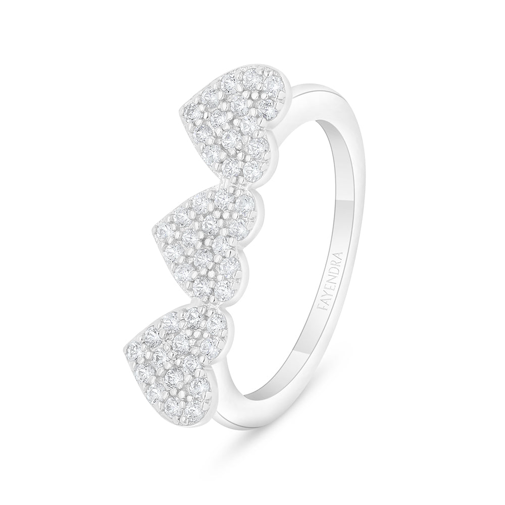 يعكس قيمة شعورك أكثر مما يعكس الضوء، خاتم أنيق من الفضة الإسترلينية عيار 925، مطلي بطبقة من الروديوم للحفاظ على لمعانه وحمايته. يتميز بتصميم رقيق من سلسلة قلوب متتابعة، تزيّنها أحجار زركون أبيض متلألئة تضفي عليه لمسة من النعومة والأنوثة. مثالي كهدية لشخص عزيز في يوم الحب، أو لتدللي نفسك بإطلالة راقية. احصلي عليه الآن!