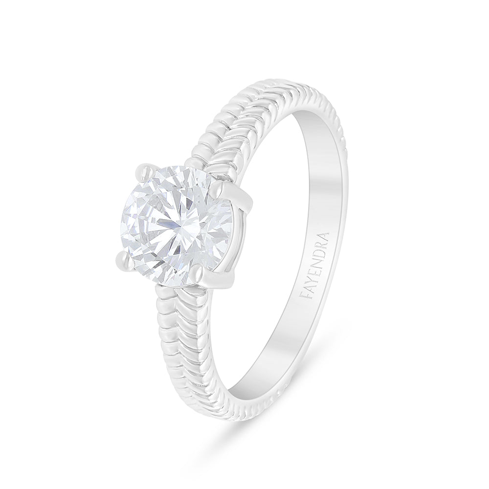 خاتم من الفضة الخالصة عيار 925 مطلي روديوم مرصع فص ابيض