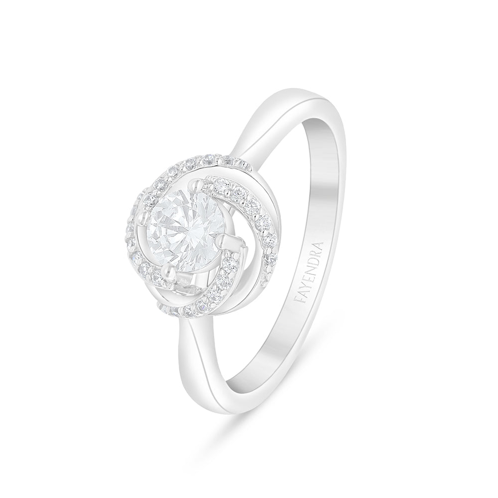 Total Weight: 2.8g تحفة فنية تجسّد الأناقة وتترجم المشاعر إلى تفاصيل متقنة. هذا الخاتم صُمم ليكون رفيق لحظاتكِ السعيدة، بجماله الأخّاذ وصياغته الدقيقة من فضة إسترلينية عيار 925، مطلي بطبقة من الروديوم لتحافظ على لمعانه وحمايته. في قلب هذا التصميم يستقر حجر زركون أبيض متلألئ، تحيط به دوامة متناغمة من أحجار الزركون الصغيرة التي تدور حوله بخطوط انسيابية تعكس الضوء من كل زاوية، لتمنحك لوحة من البريق والسحر. تسوقيه الآن!