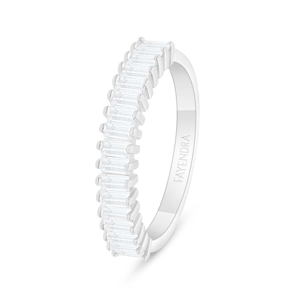 Total Weight: 2.5g اجعلي من كل إطلالة لكِ لمسة فريدة لا تُنسى، وأثري مجموعتك من المجوهرات الراقية بهذا الخاتم الساحر. تم تصنيعه بعناية من فضة إسترلينية نقية عيار 925، ومطلي بطبقة من الروديوم لتمنحه بريقاً يدوم وحماية إضافية. يتميز الخاتم بتصميم أنيق مرصّع بمصفوفة استثنائية من أحجار الزركون الأبيض، المقطوعة بدقة على شكل باغيت لامع، ما يضفي عليه لمسة من الفخامة والتفرّد. لا تفوتي فرصة اقتنائه، وأضيفيه إلى سلتك الآن!