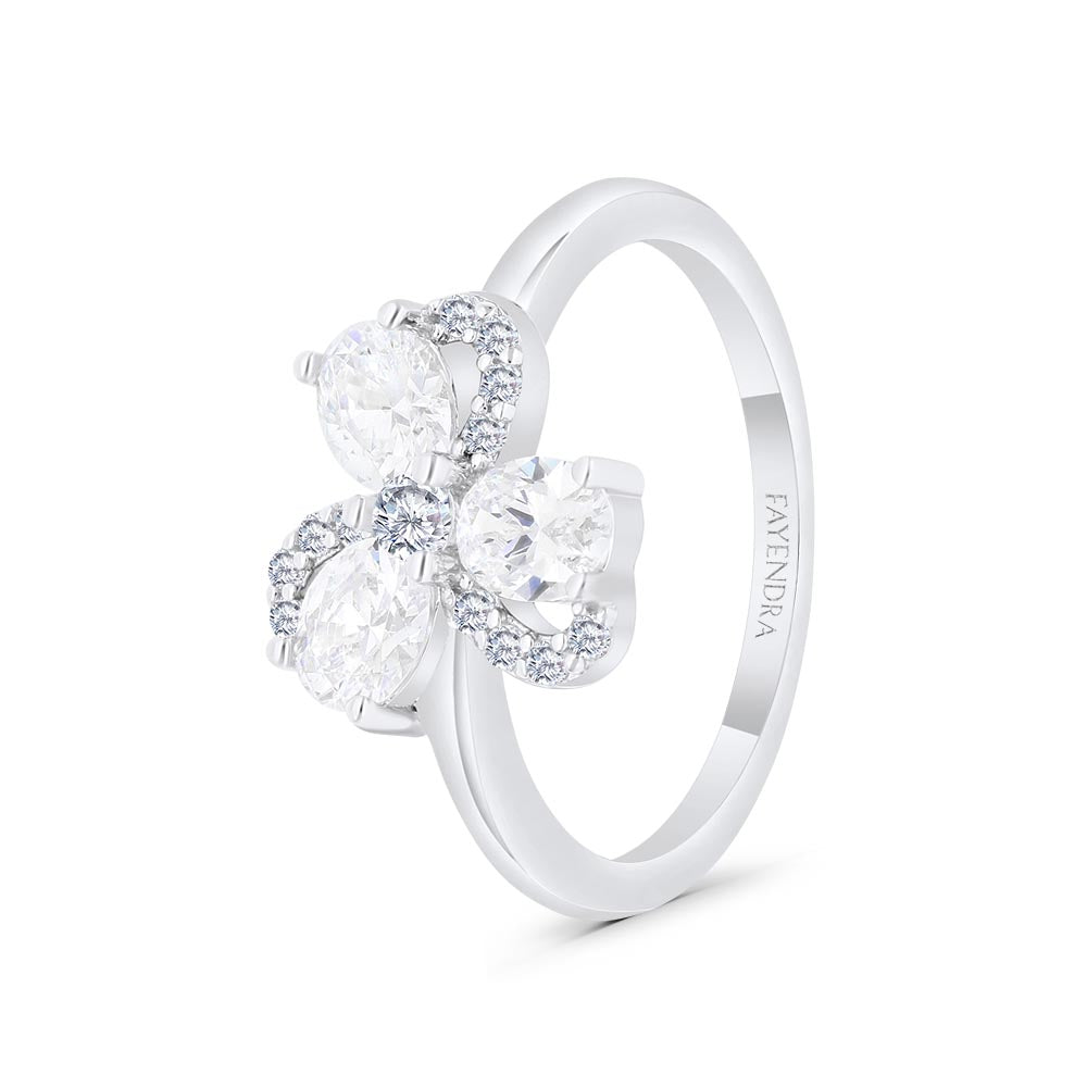 خاتم من الفضة الخالصة عيار 925 مطلي روديوم مرصع فص ابيض