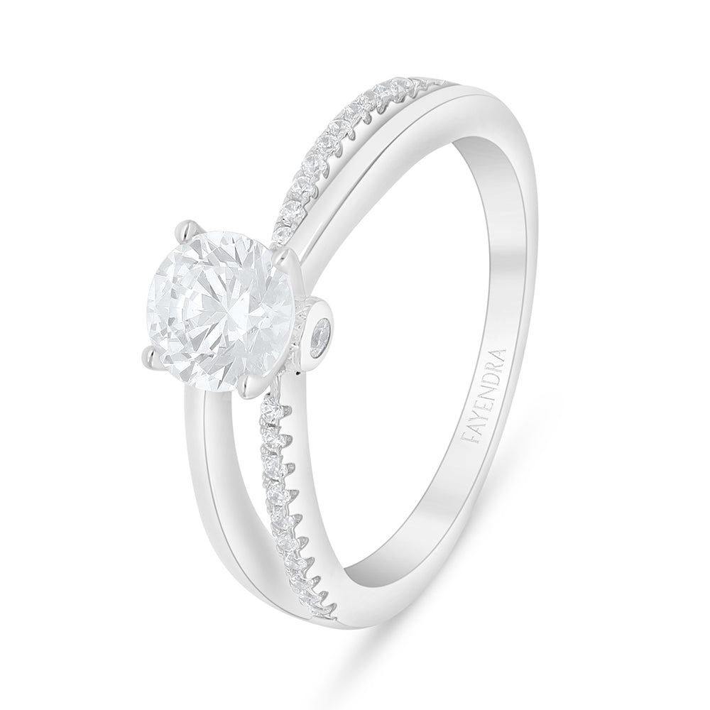 يأتي الخاتم مزينًا بجوهرة زركون أبيض مضيء كضوء القمر، تحيط بها مجموعة مختارة من أحجار الزركون الأبيض المتلألئة كضوء القمر والنجوم، في تصميم فني راقٍ.
