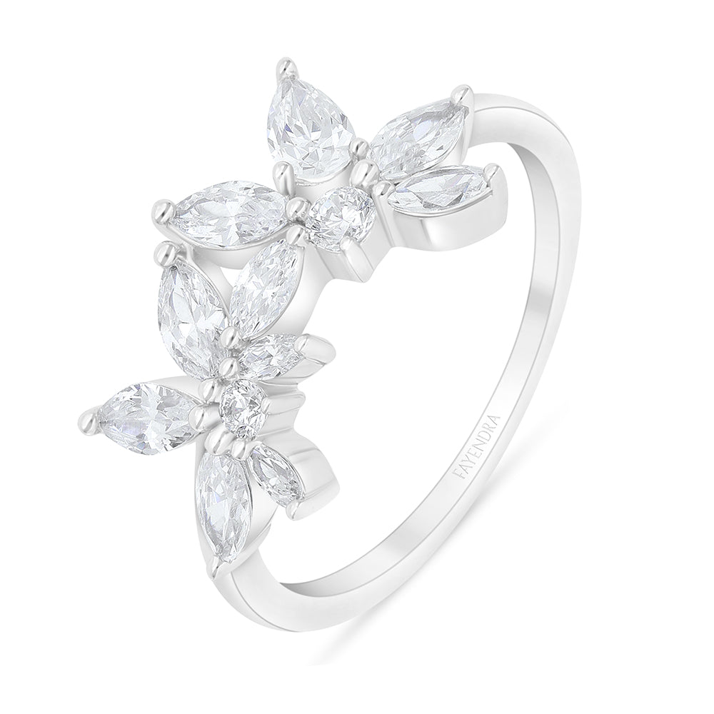 خاتم من الفضة الخالصة عيار 925 مطلي روديوم مرصع فص ابيض