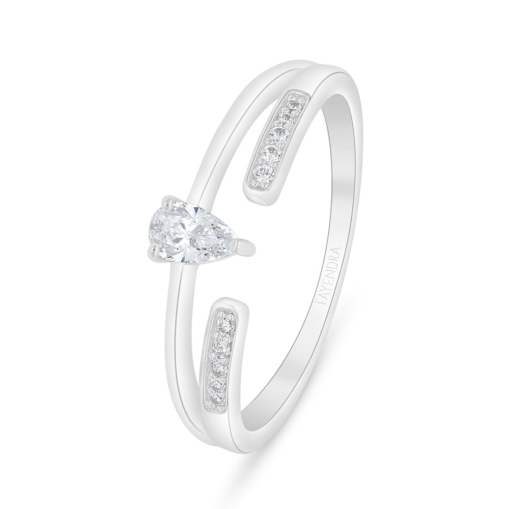 خاتم من الفضة الخالصة عيار 925 مطلي روديوم مرصع فص ابيض