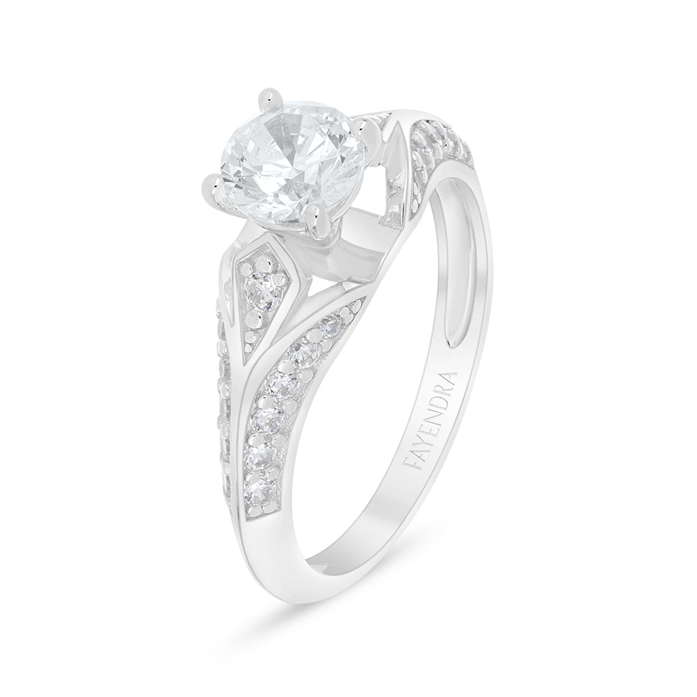 خاتم من الفضة الخالصة عيار 925 مطلي روديوم مرصع فص ابيض