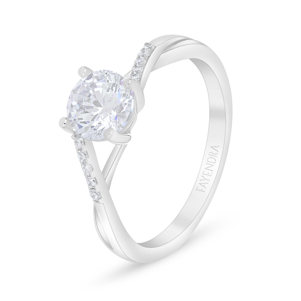 خاتم من الفضة الخالصة عيار 925 مطلي روديوم مرصع فص ابيض