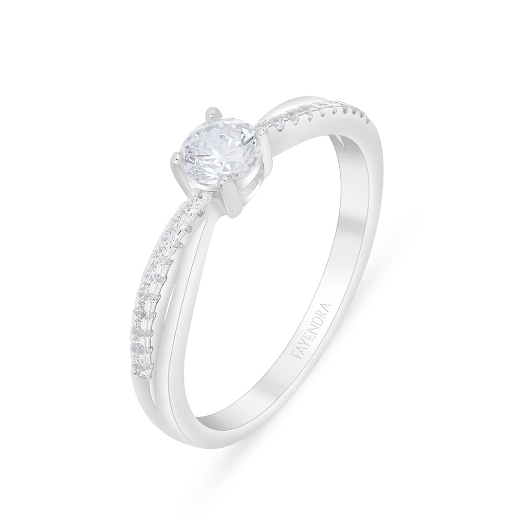 خاتم من الفضة الخالصة عيار 925 مطلي روديوم مرصع فص ابيض