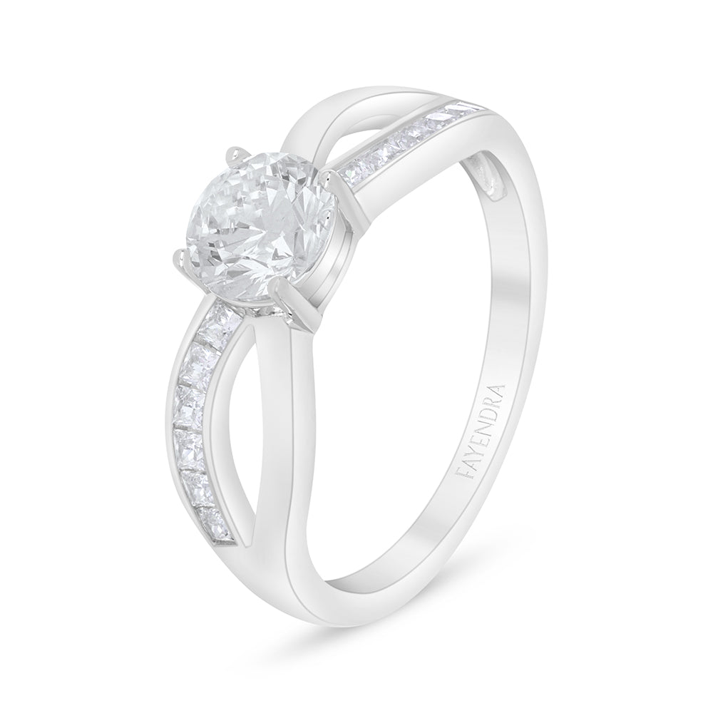 خاتم من الفضة الخالصة عيار 925 مطلي روديوم مرصع فص ابيض