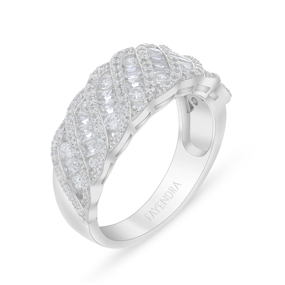 خاتم من الفضة الخالصة عيار 925 مطلي روديوم مرصع فص ابيض