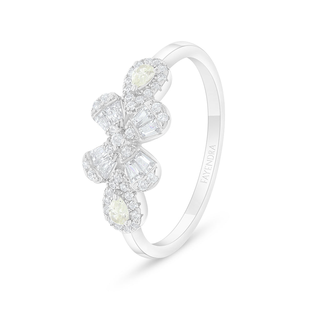 خاتم من الفضة الخالصة عيار 925 مطلي روديوم مرصع بالزركون الكناري الالماسي و فص ابيض