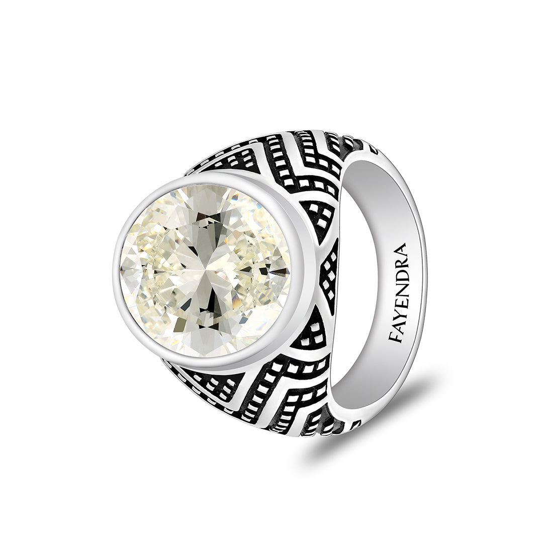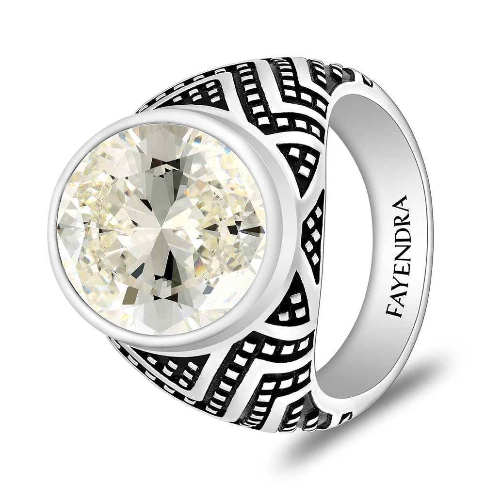 خاتم رجالي من الفضة الخالصة عيار 925 مطلي روديوم و اسود مرصع زركون اصفر