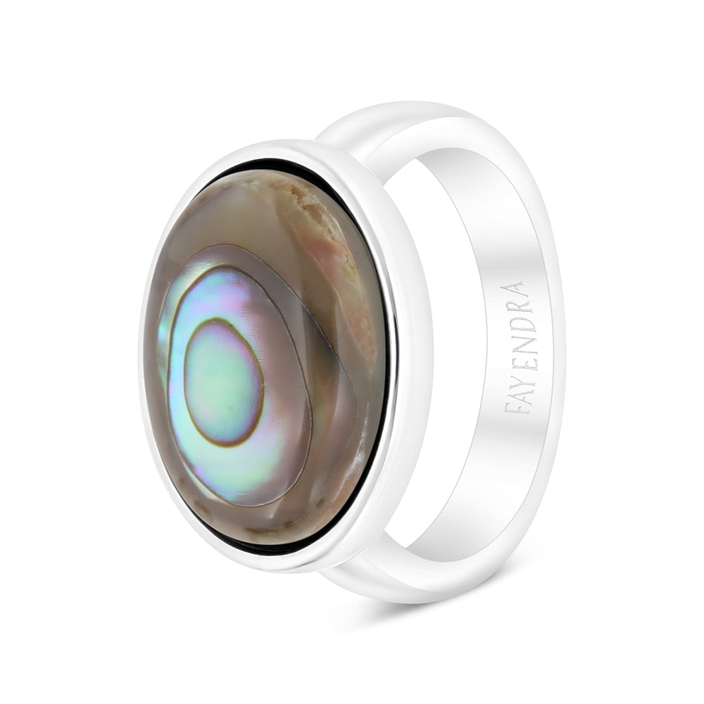 خاتم رجالي فضة عيار 925 مطلي روديوم مرصع احجار صدف استرالي
