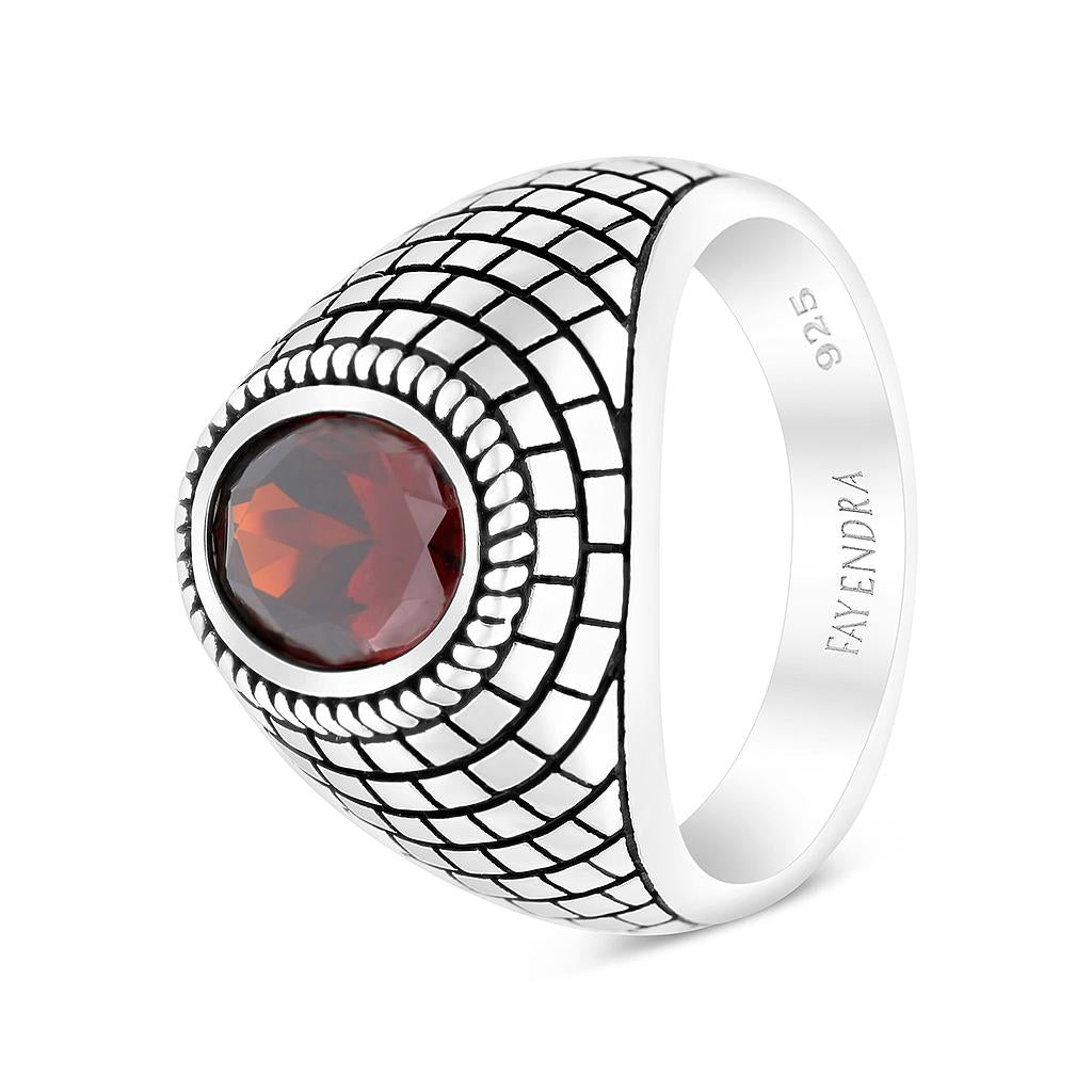 خاتم رجالي فضة عيار 925 مطلي روديوم زركون غرانيت