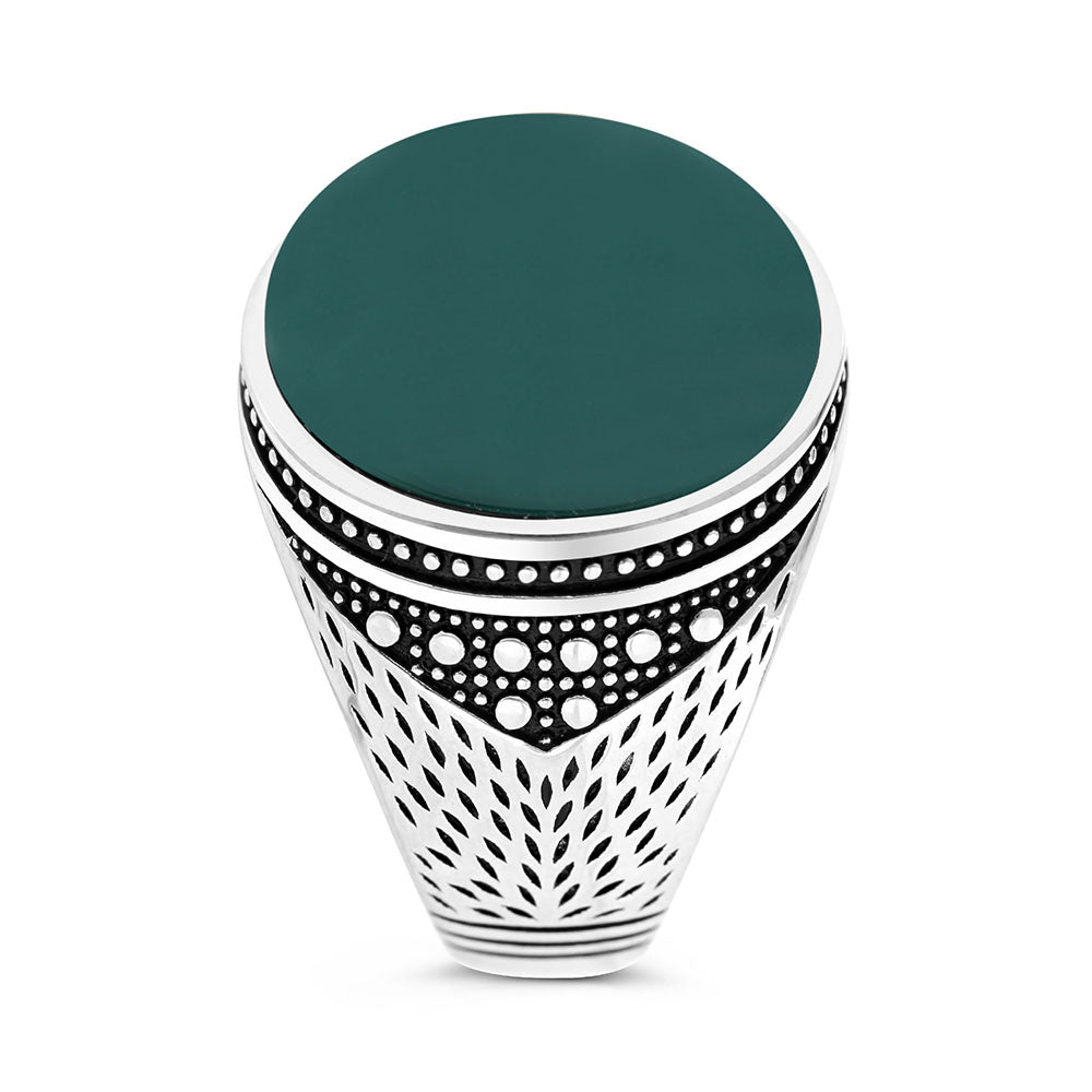 خاتم رجالي فضة عيار 925 مطلي روديوم احجار عقيق جاد اخضر طبيعي