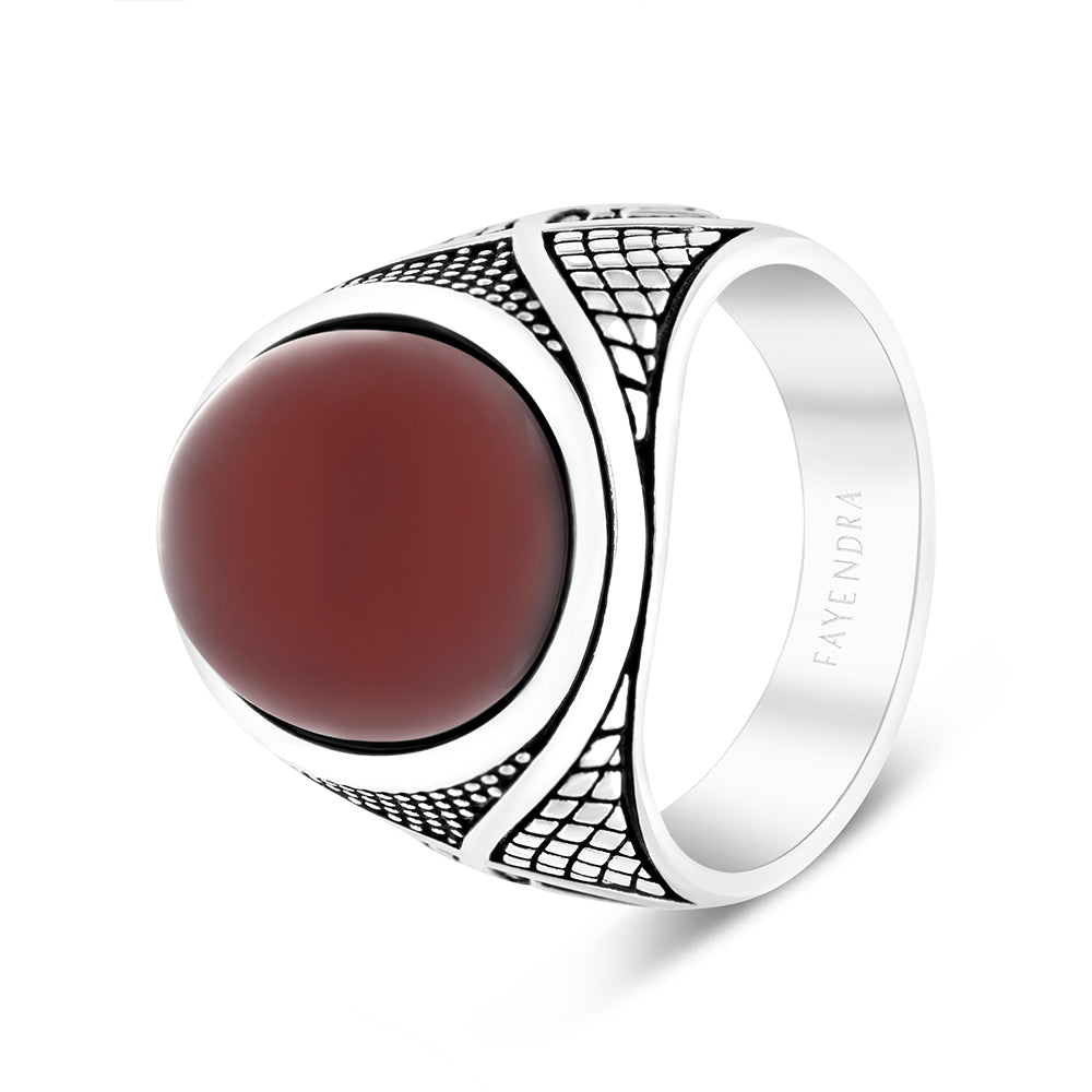 خاتم رجالي فضة عيار 925 مطلي روديوم احجار عقيق طبيعي LOGO