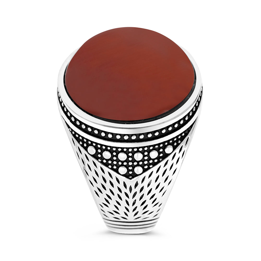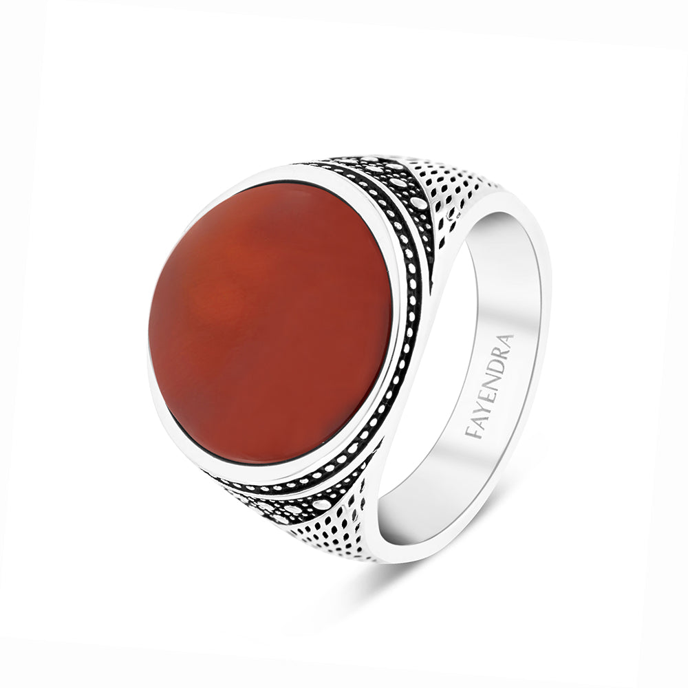 خاتم رجالي فضة عيار 925 مطلي روديوم احجار عقيق طبيعي