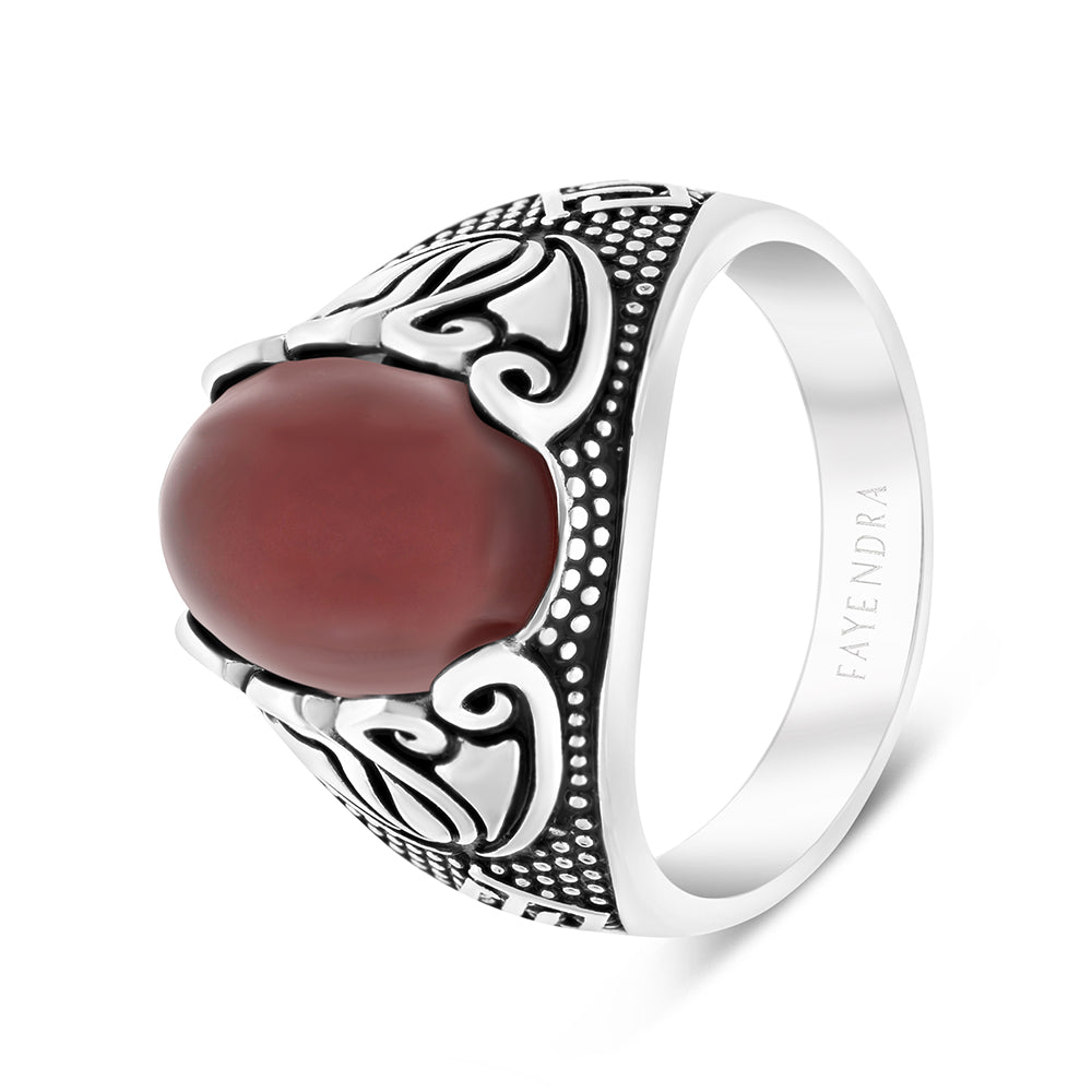خاتم رجالي فضة عيار 925 مطلي روديوم احجار عقيق طبيعي LOGO