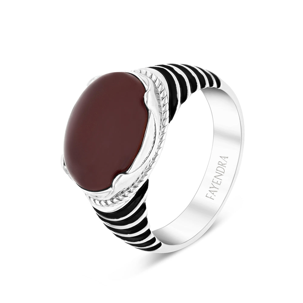 خاتم رجالي فضة عيار 925 مطلي روديوم احجار عقيق طبيعي