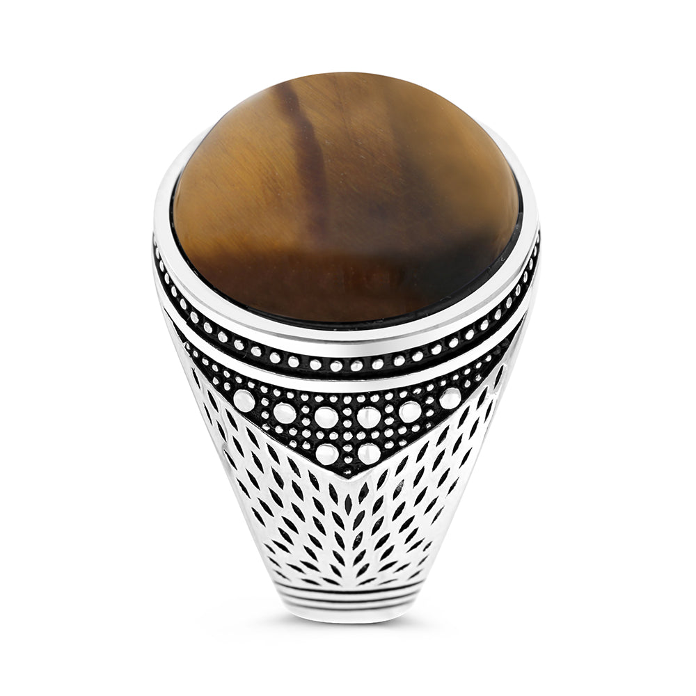 خاتم رجالي فضة عيار 925 مطلي روديوم احجار عين النمر اصفر