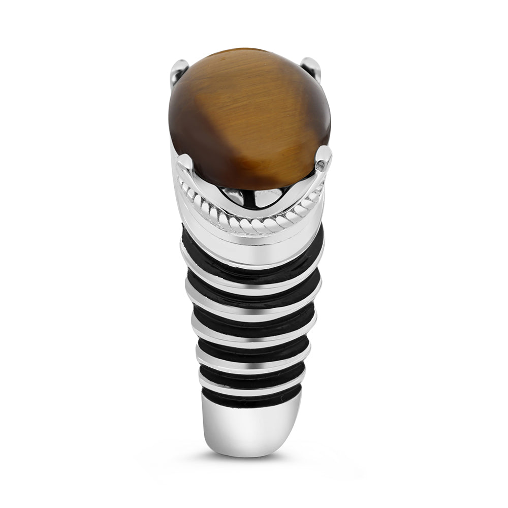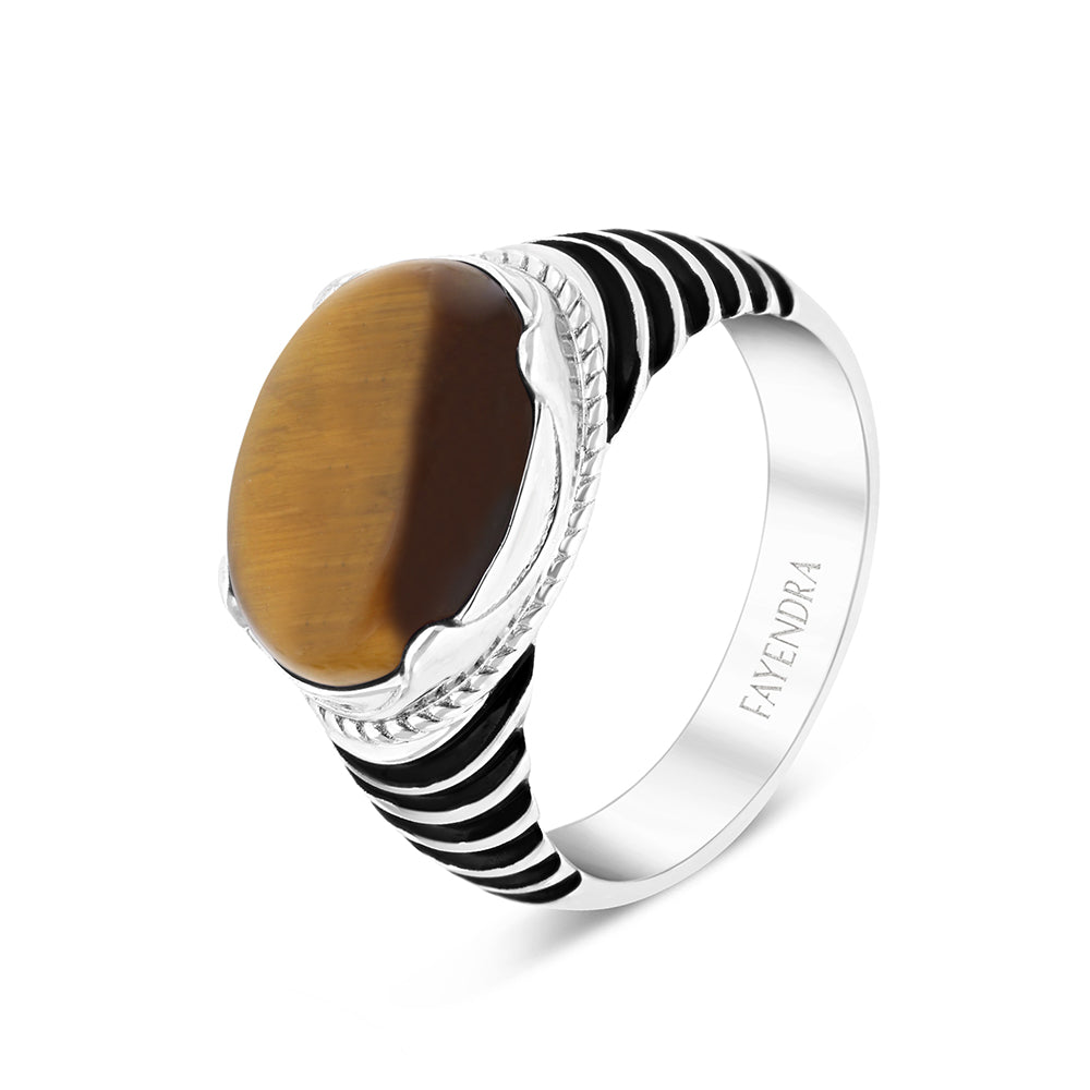 خاتم رجالي فضة عيار 925 مطلي روديوم احجار عين النمر اصفر
