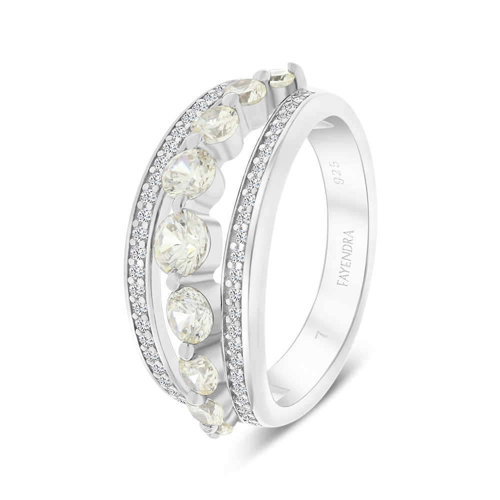 خاتم من الفضة الخالصة عيار 925 مطلي روديوم زركون اصفر و فص ابيض