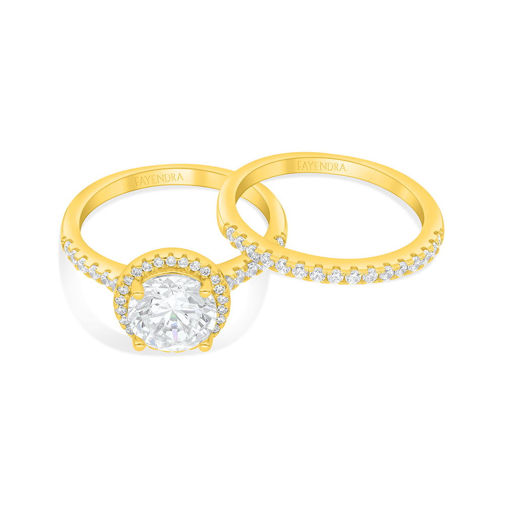 خاتم توينز من الفضة الخالصة عيار 925 مطلي ذهبي مرصع فص ابيض