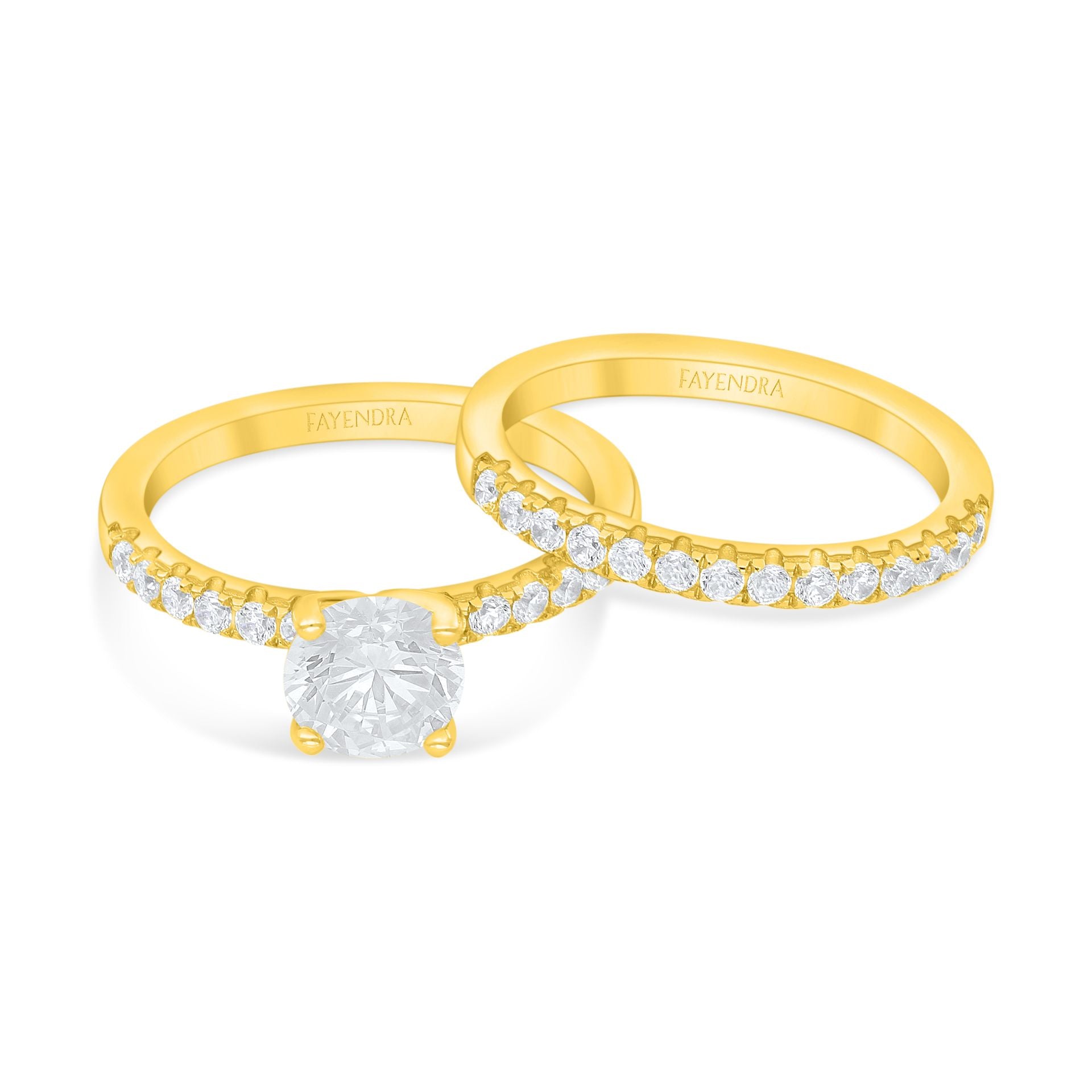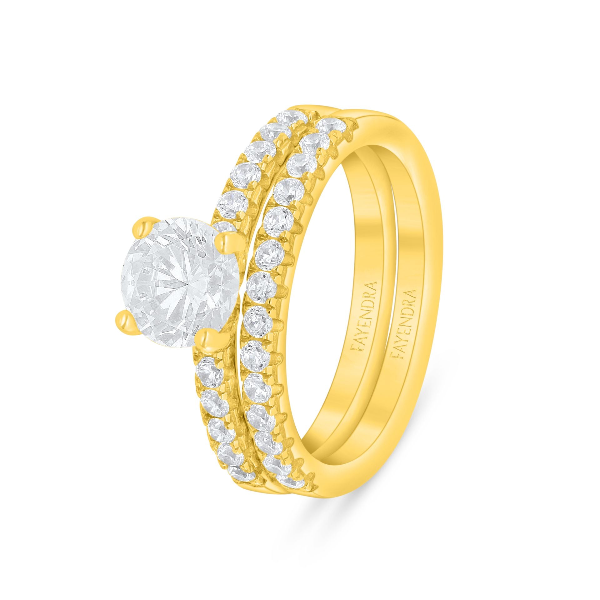 خاتم توينز من الفضة الخالصة عيار 925 مطلي ذهبي مرصع فص ابيض
