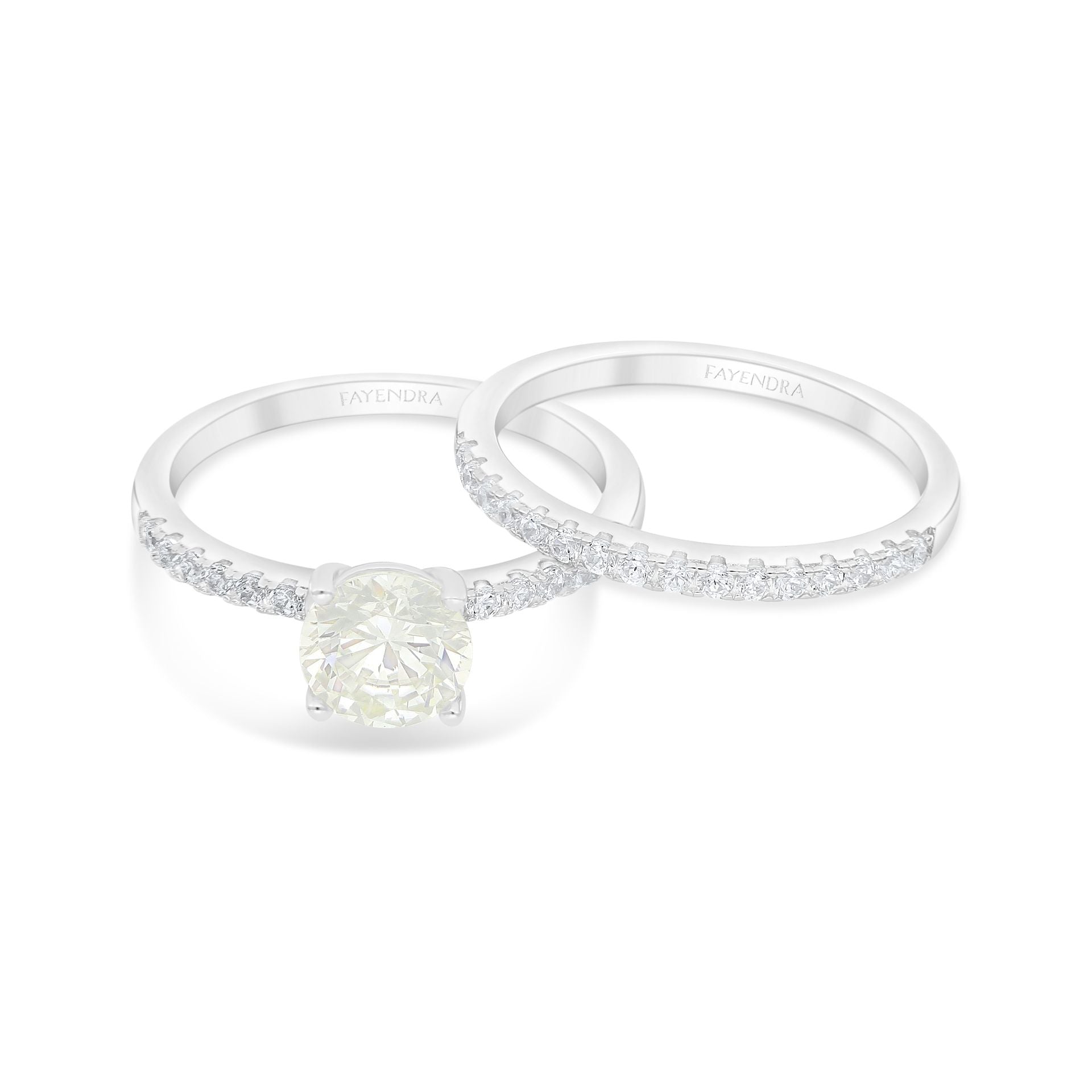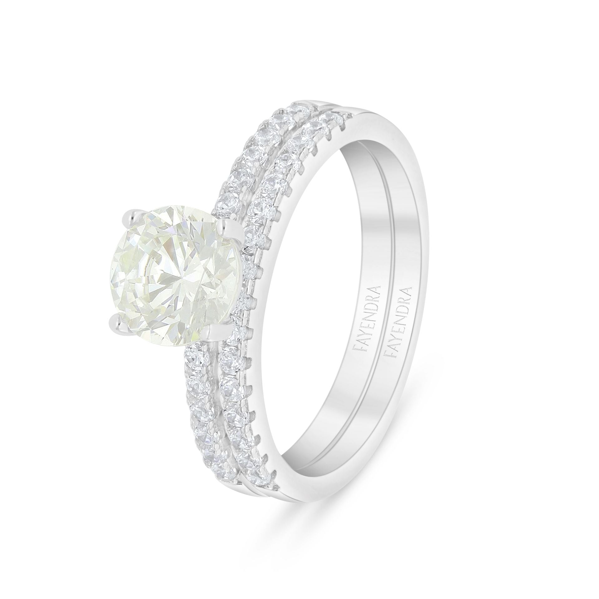 خاتم توينز من الفضة الخالصة عيار 925 مطلي روديوم مرصع بالزركون الكناري الالماسي و فص ابيض
