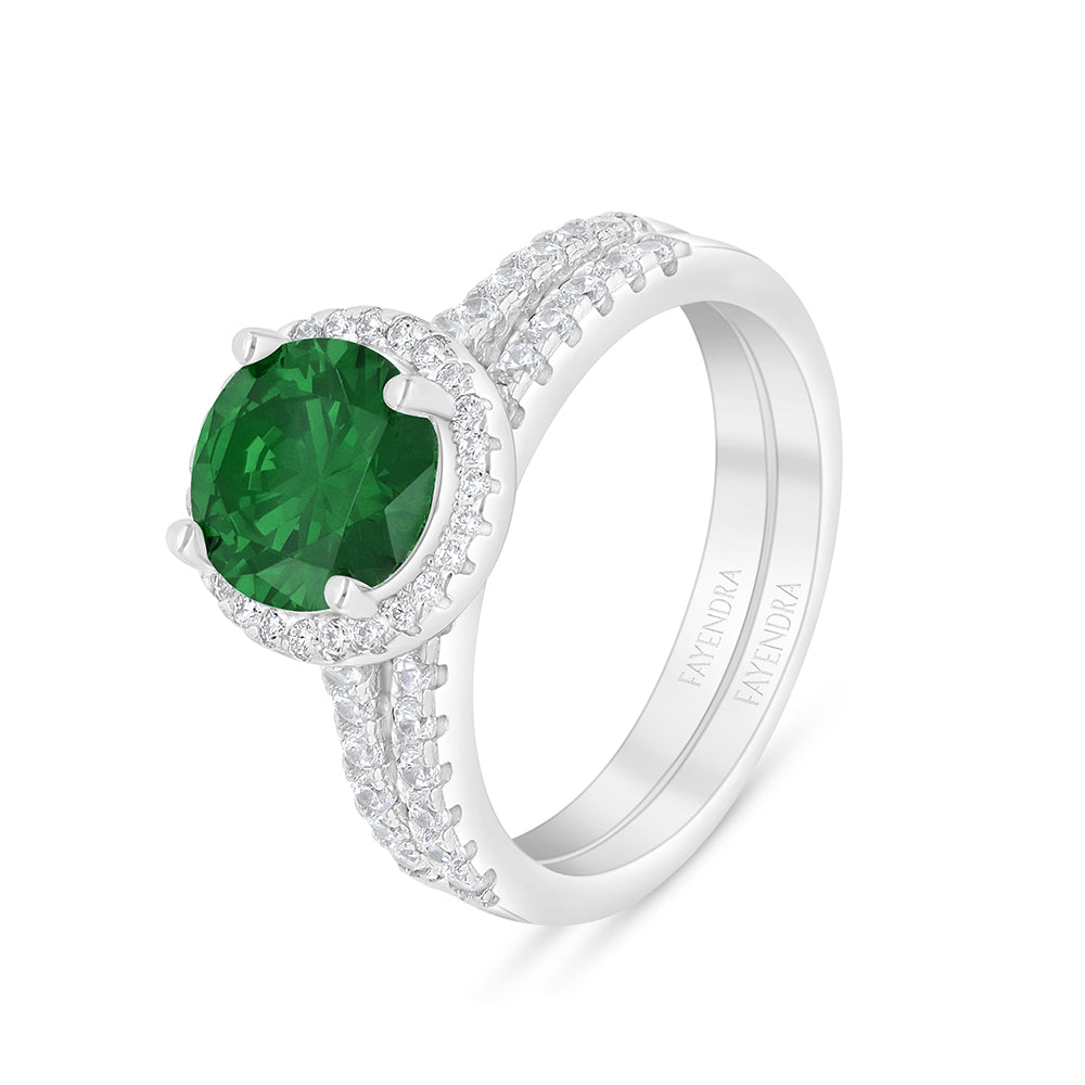 خاتم توينز من الفضة الخالصة عيار 925 مطلي روديوم مرصع زركون زمردي و فص ابيض