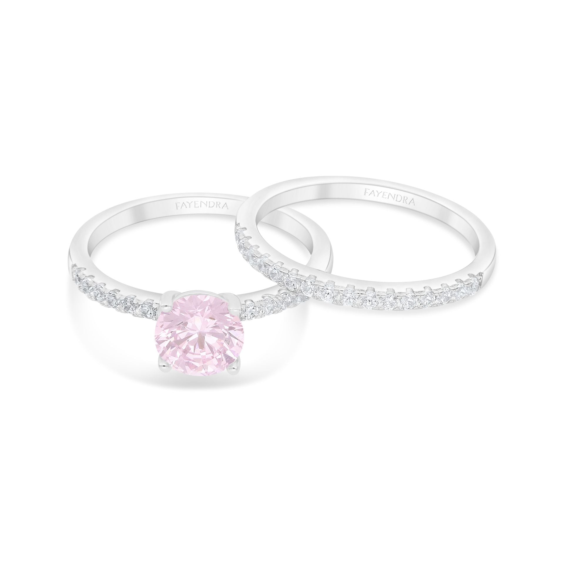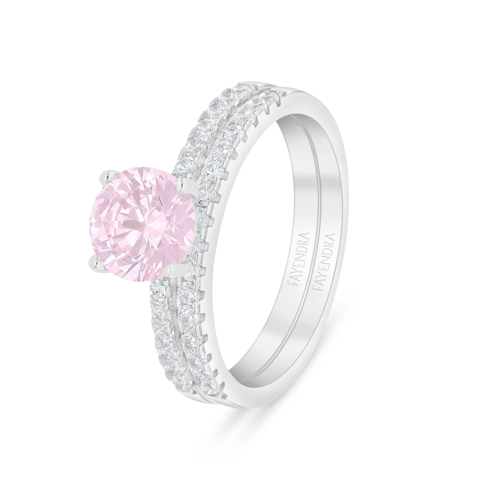 خاتم توينز من الفضة الخالصة عيار 925 مطلي روديوم مرصع زركون بنك و فص ابيض