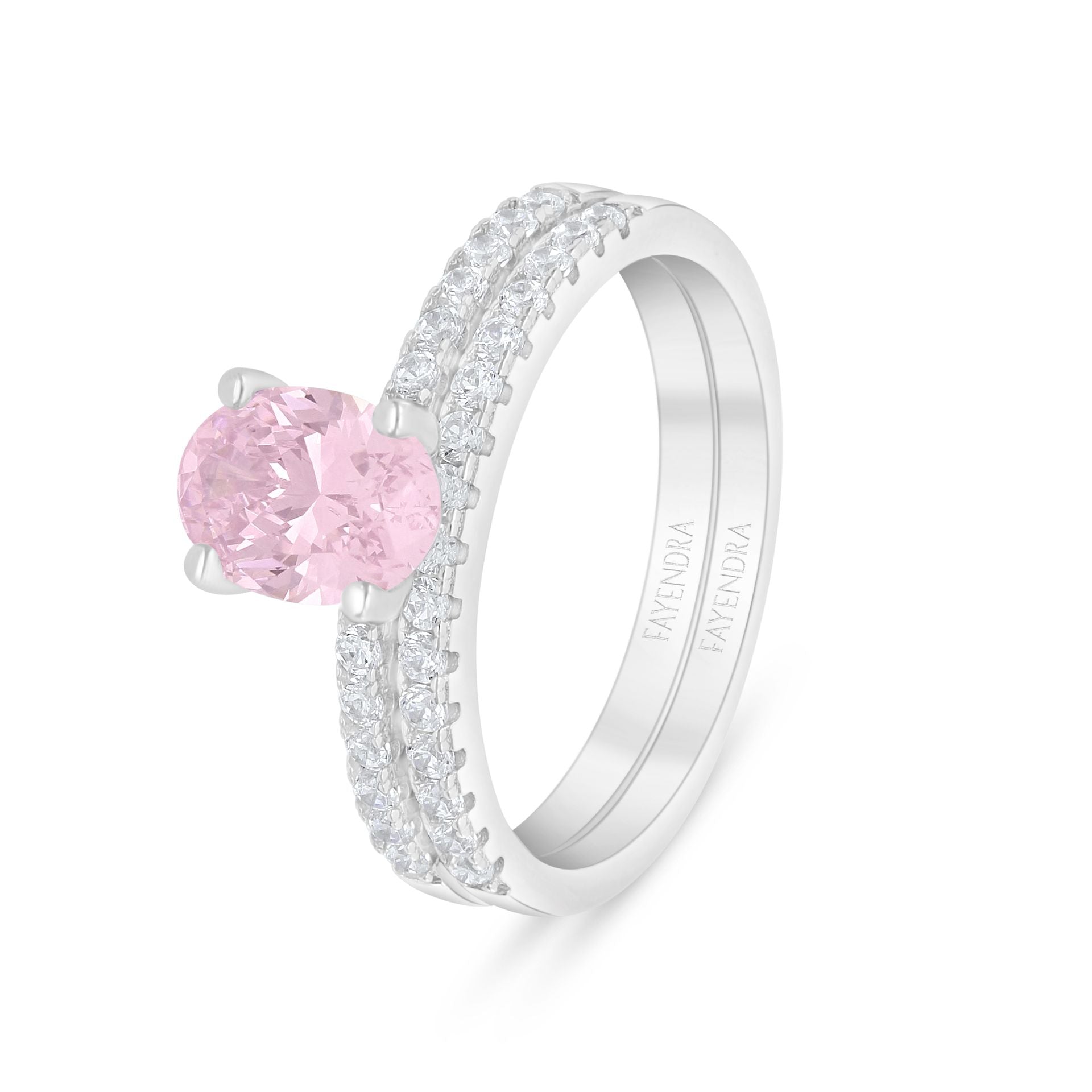 خاتم توينز من الفضة الخالصة عيار 925 مطلي روديوم مرصع زركون بنك و فص ابيض