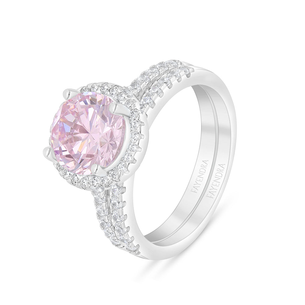 خاتم توينز من الفضة الخالصة عيار 925 مطلي روديوم مرصع زركون بنك و فص ابيض