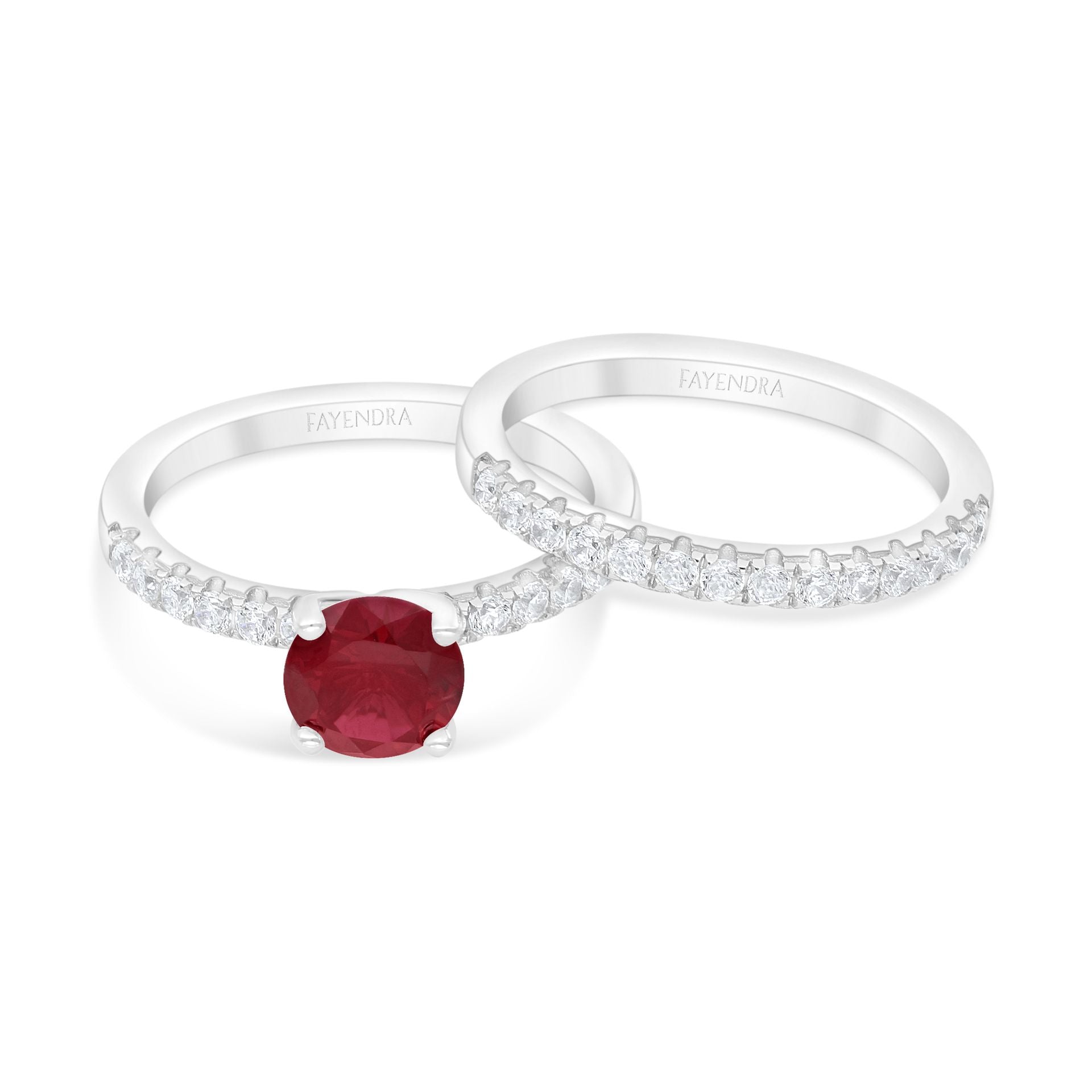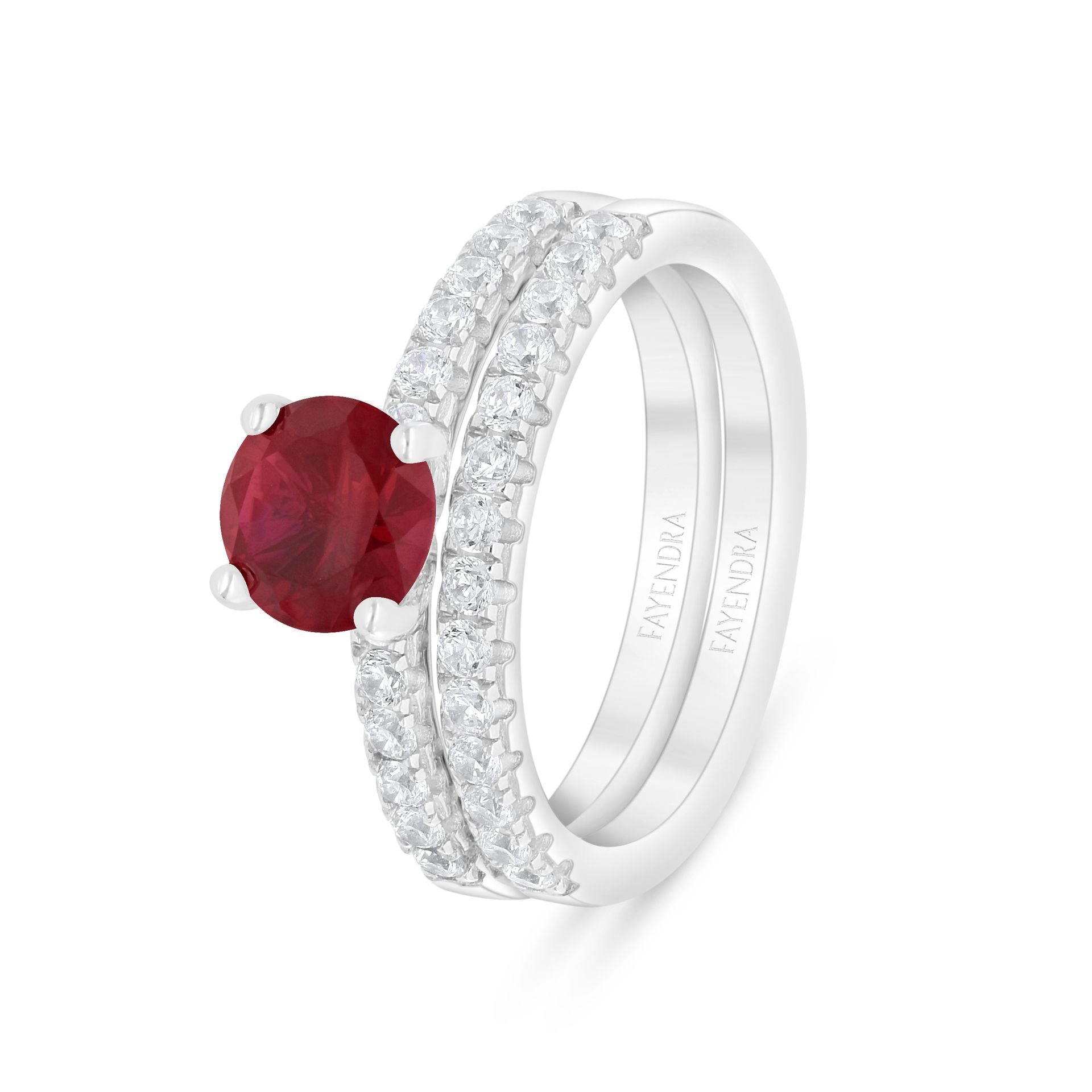 خاتم توينز من الفضة الخالصة عيار 925 مطلي روديوم مرصع ياقوت كروندوم و فص ابيض