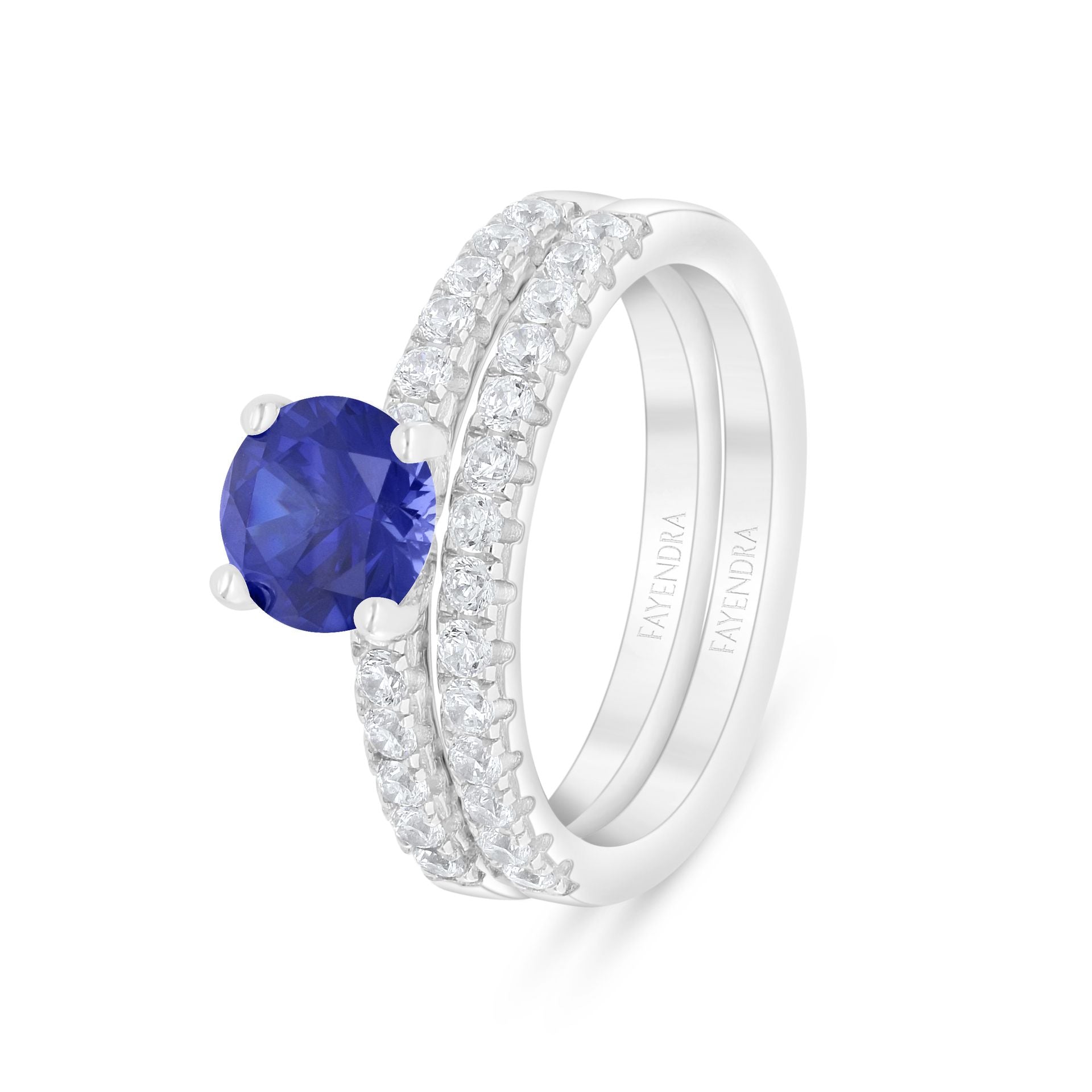 خاتم توينز من الفضة الخالصة عيار 925 مطلي روديوم مرصع زفير كروندوم و فص ابيض