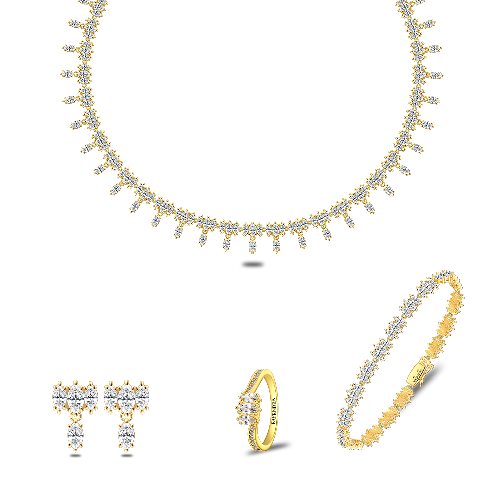 طقم من الفضة الخالصة عيار 925 مطلي ذهبي مرصع فص ابيض