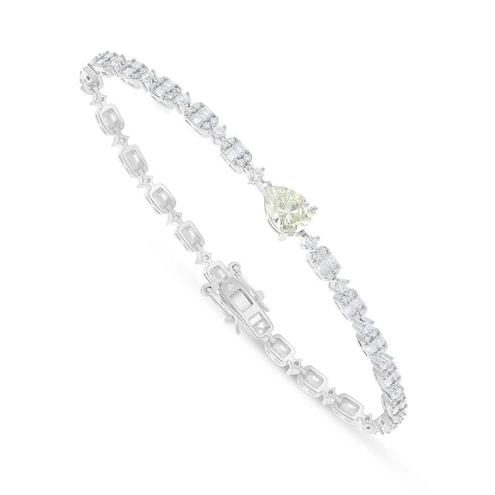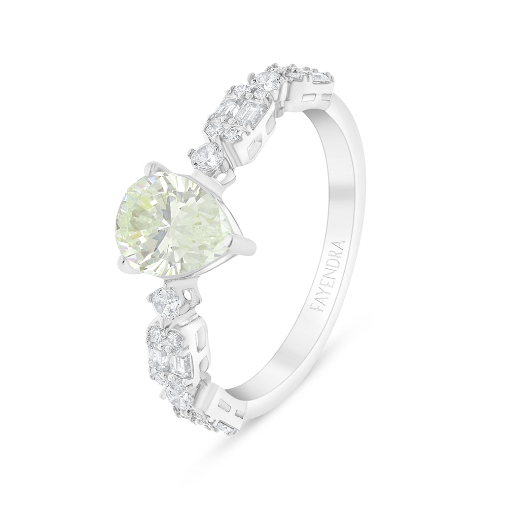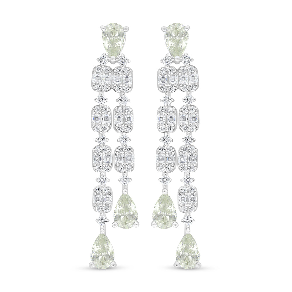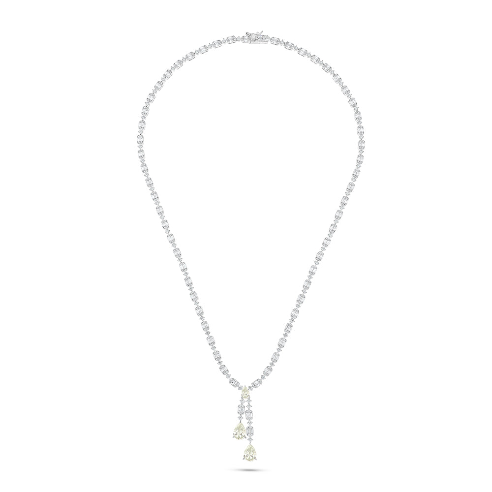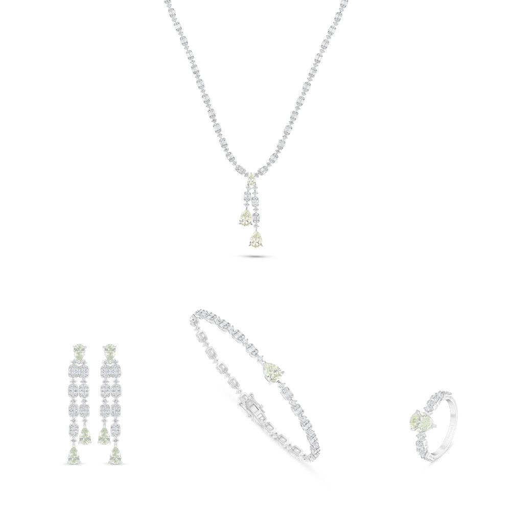 طقم من الفضة الخالصة عيار 925 مطلي روديوم مرصع احجار زركون كناري الماسي و فص ابيض