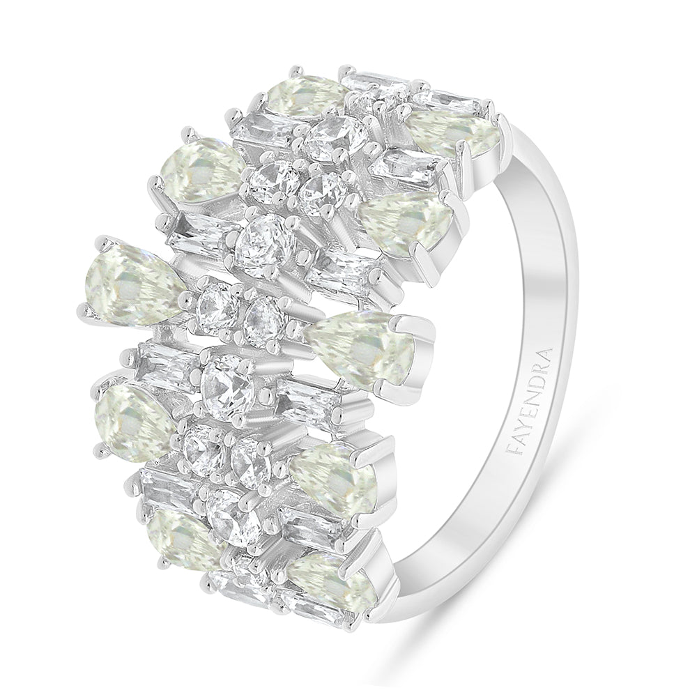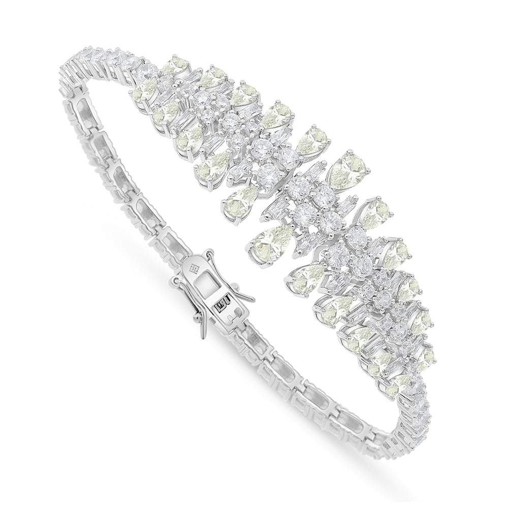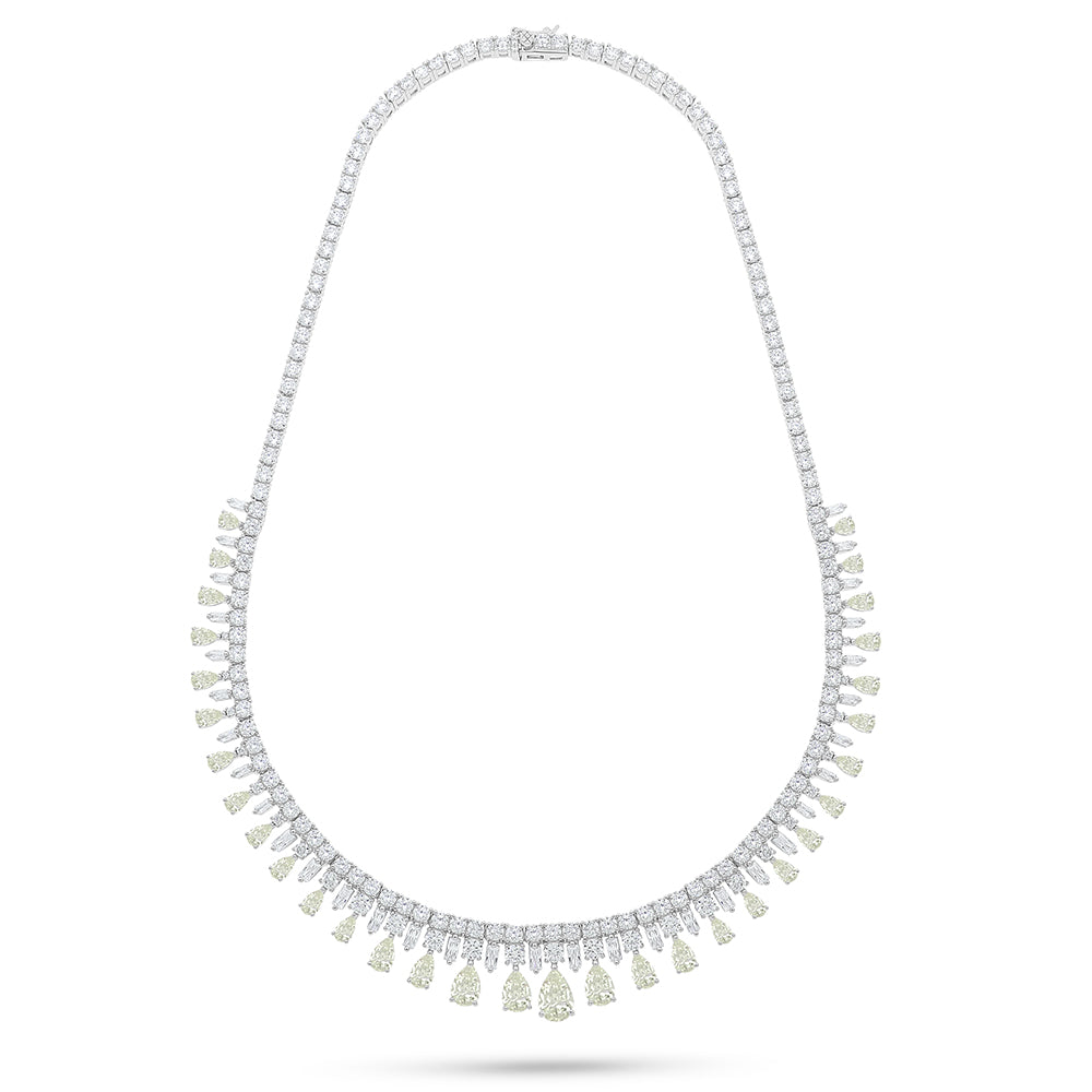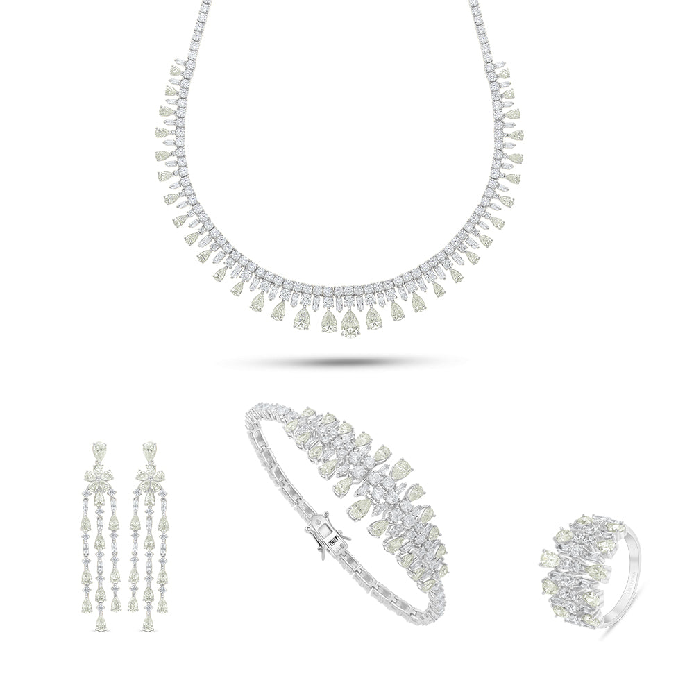 طقم من الفضة الخالصة عيار 925 مطلية روديوم مرصعة بالزركون الكناري الالماسي فص ابيض