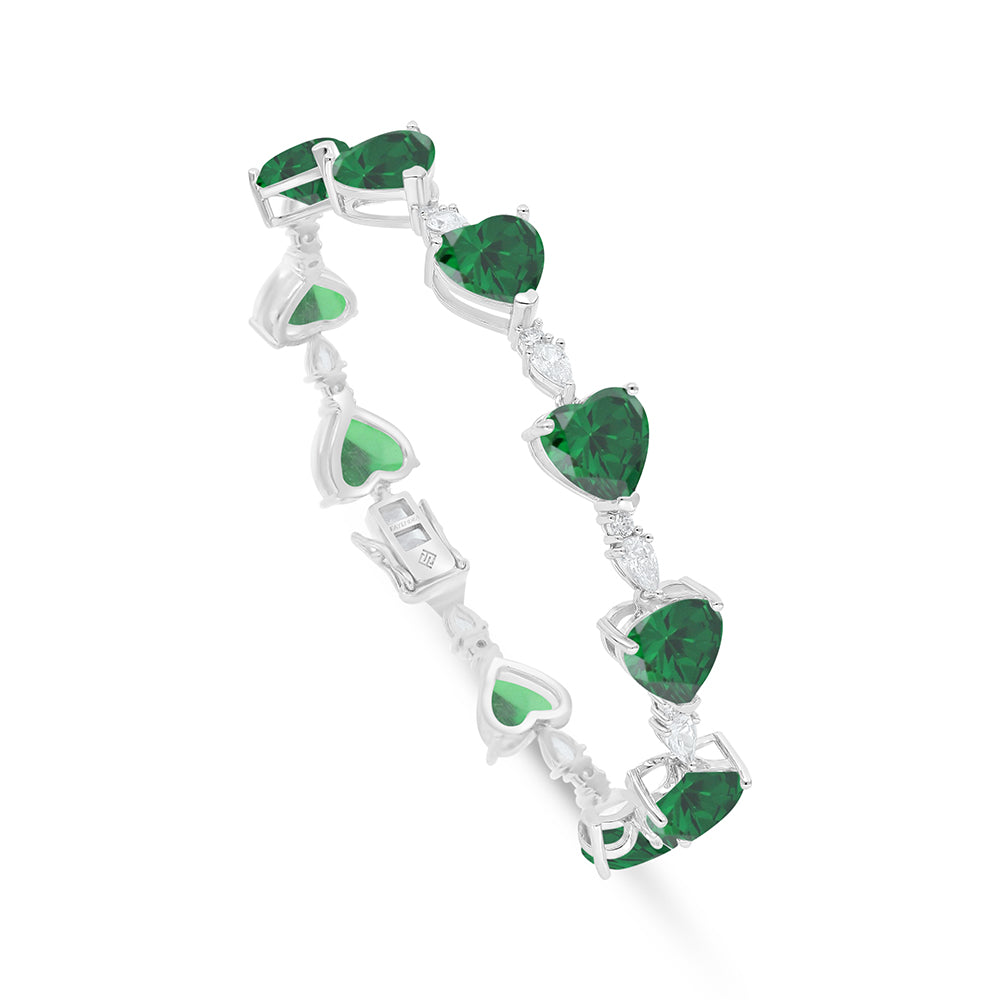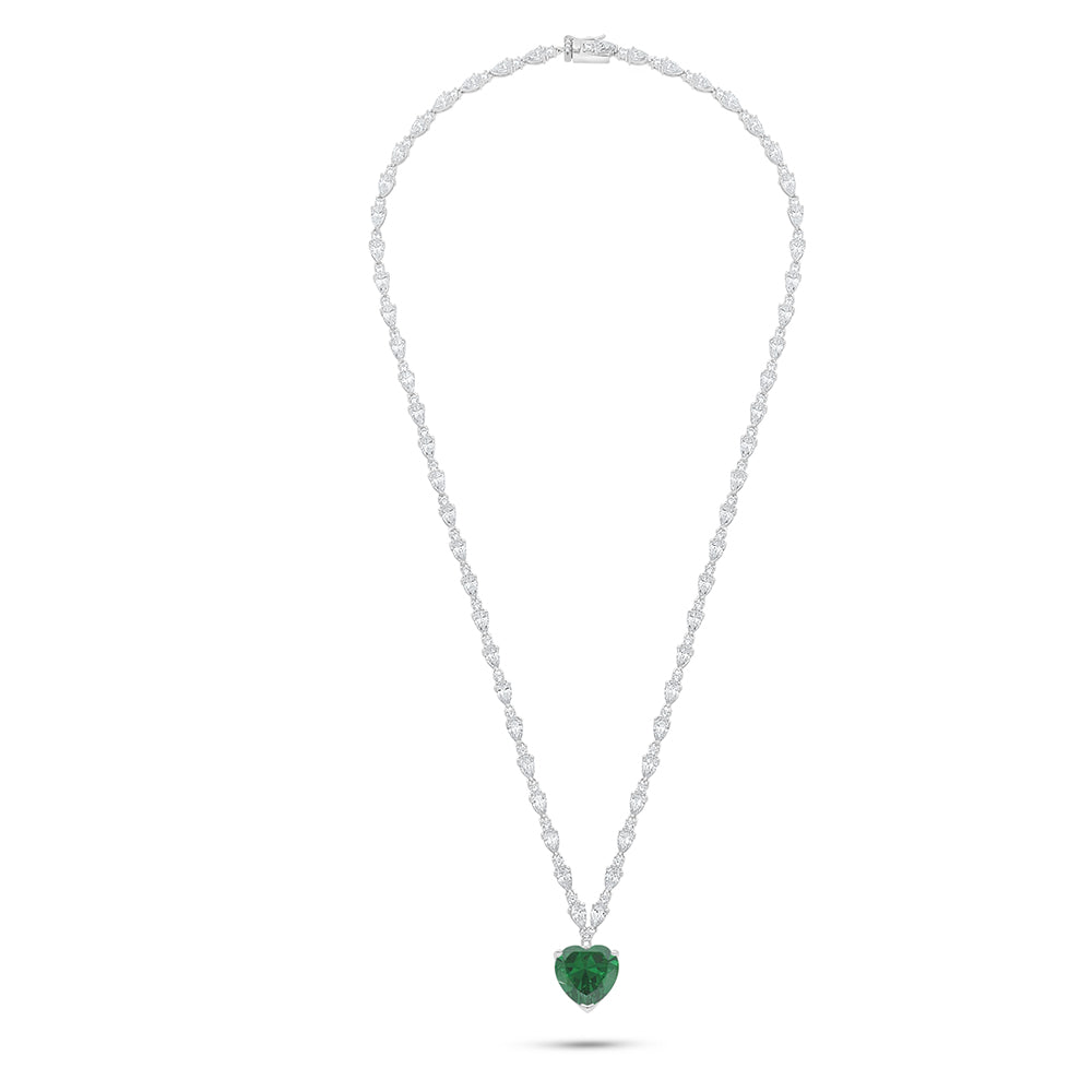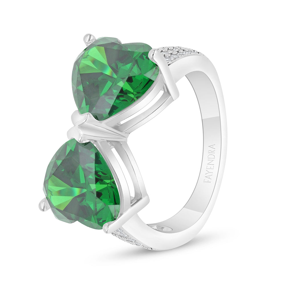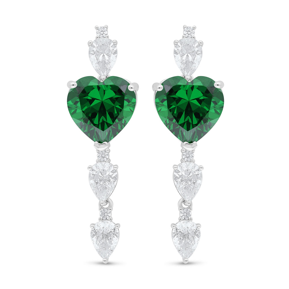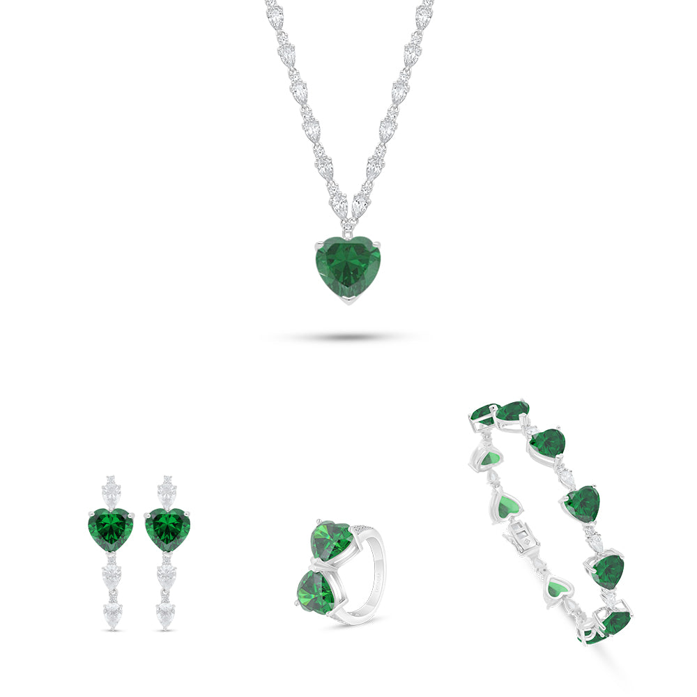طقم من الفضة الخالصة عيار 925 مطلي روديوم مرصع احجار زركون زمردي و فص ابيض