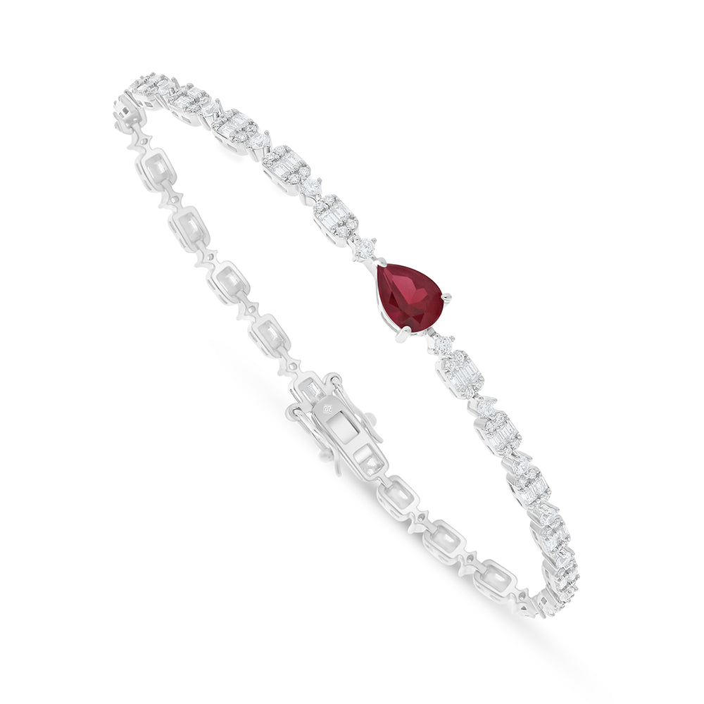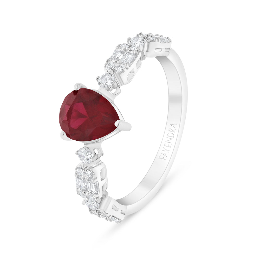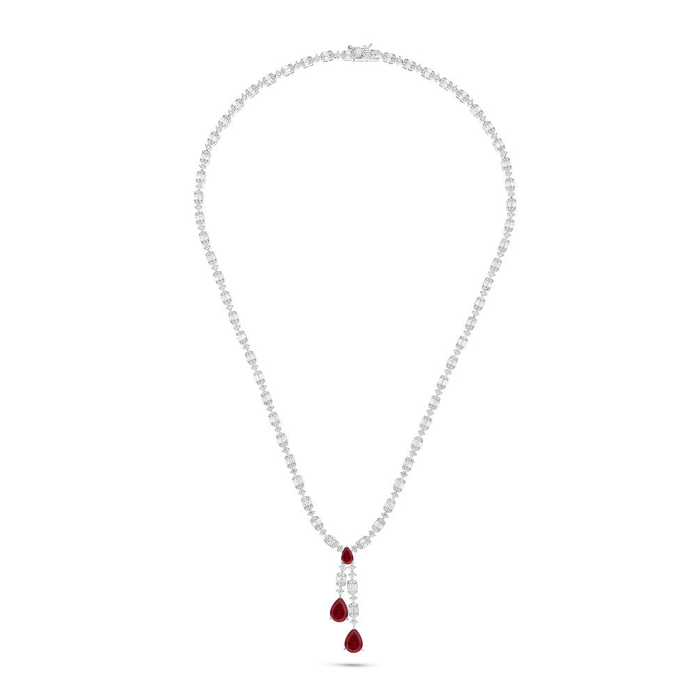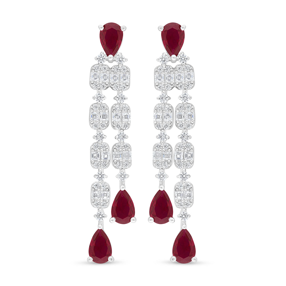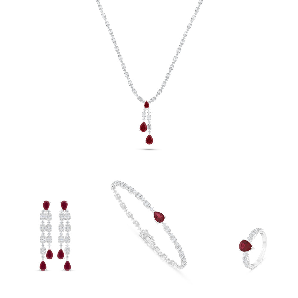 طقم من الفضة الخالصة عيار 925 مطلي روديوم و احجار ياقوت كروندوم و فص ابيض