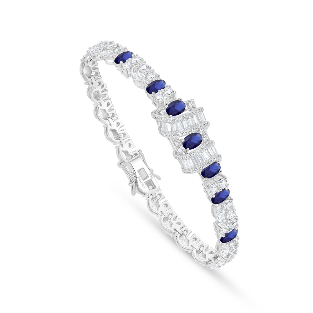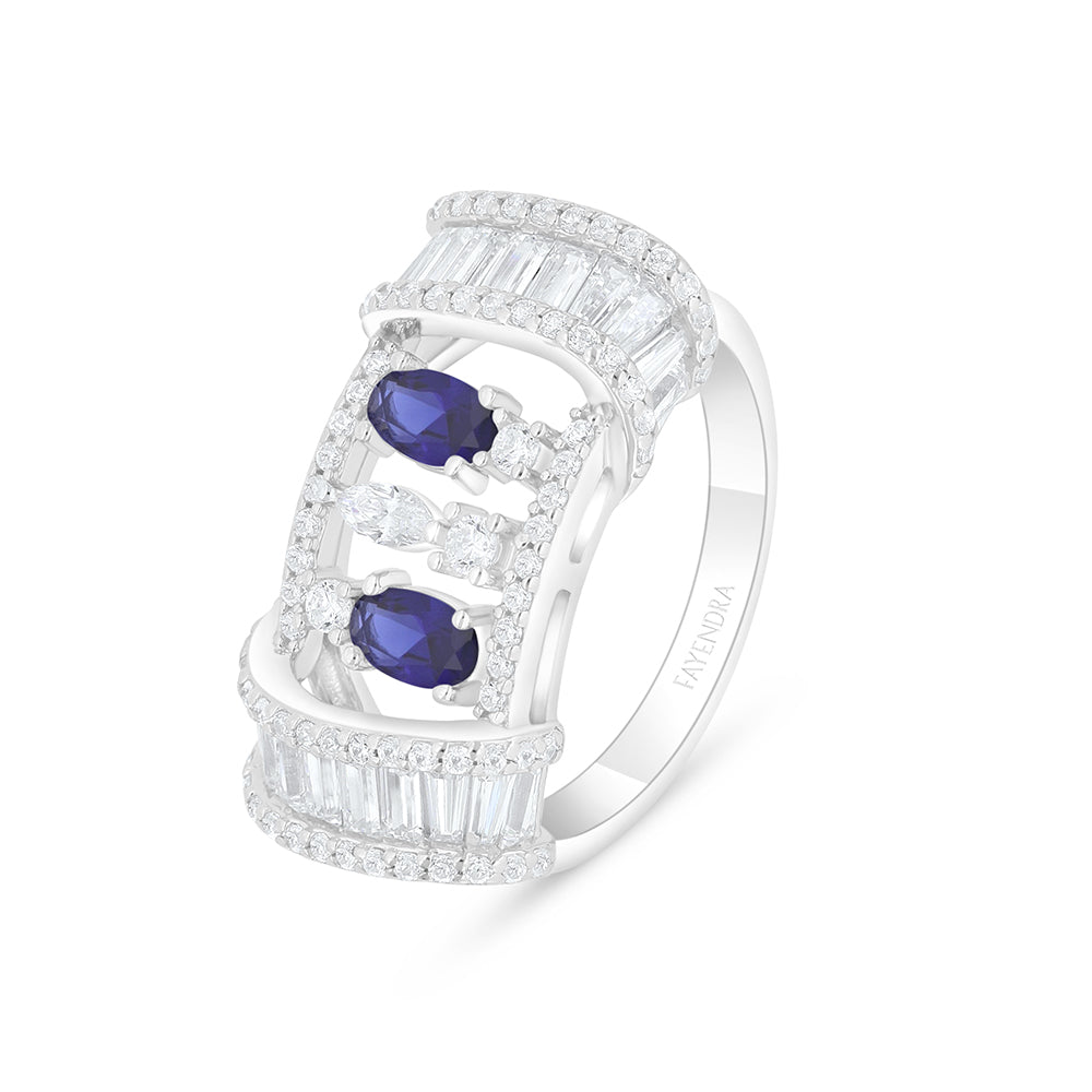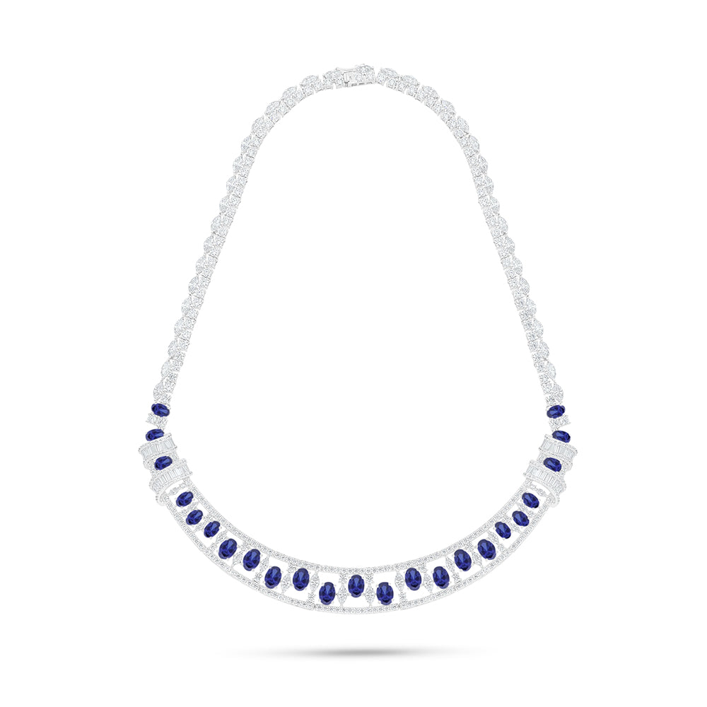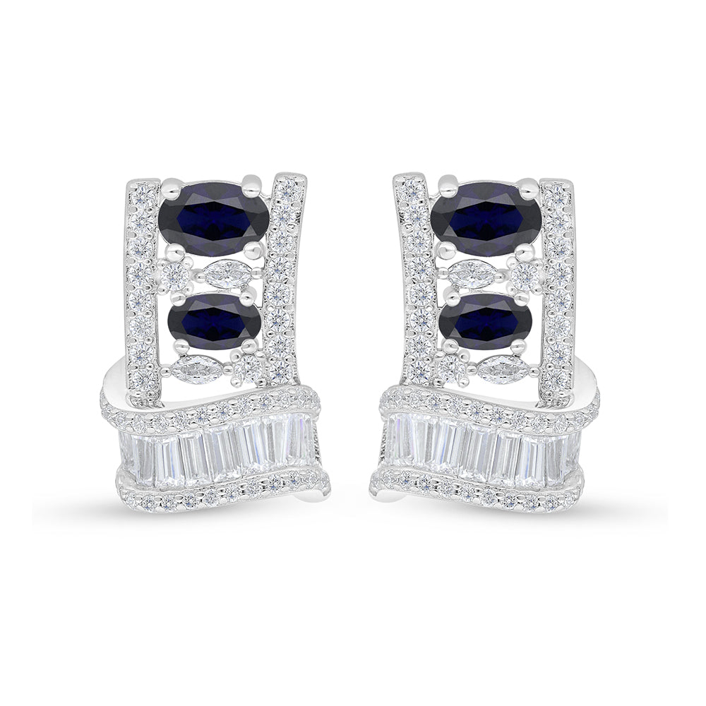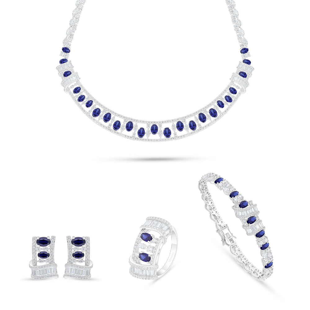طقم من الفضة الخالصة عيار 925 مطلي روديوم مرصع احجار زفير كروندوم و فص ابيض