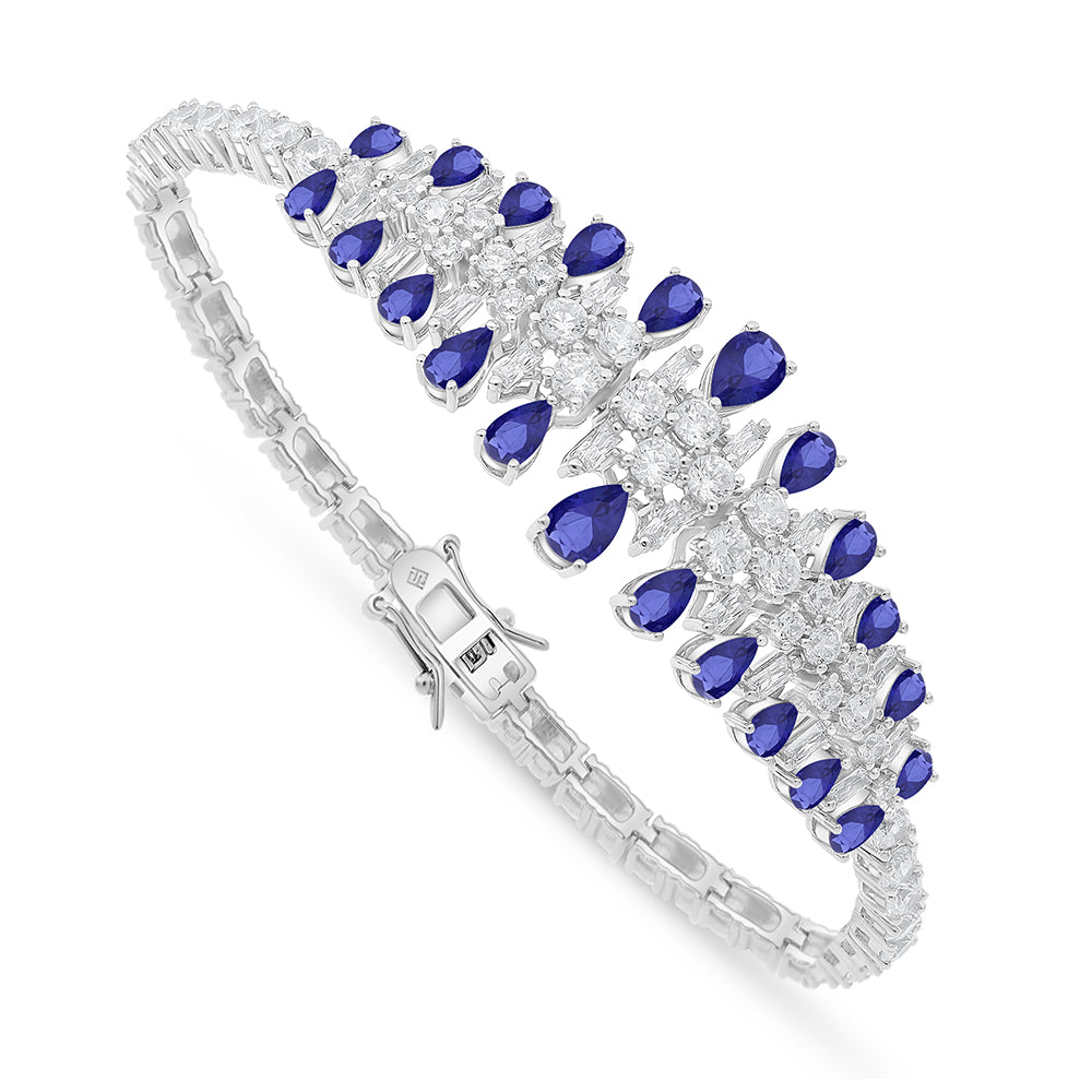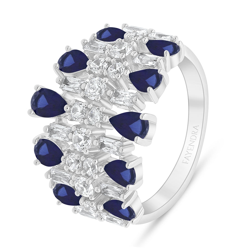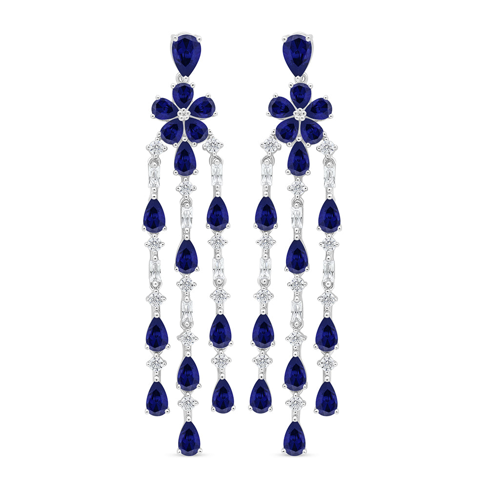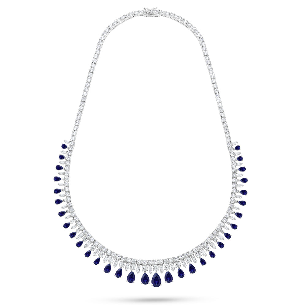 طقم من الفضة الخالصة عيار 925 مطلي روديوم و احجار زفير كروندوم مرصع فص ابيض