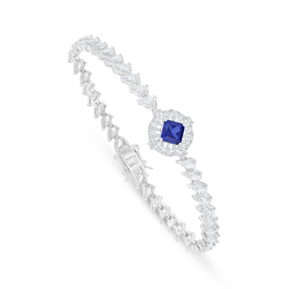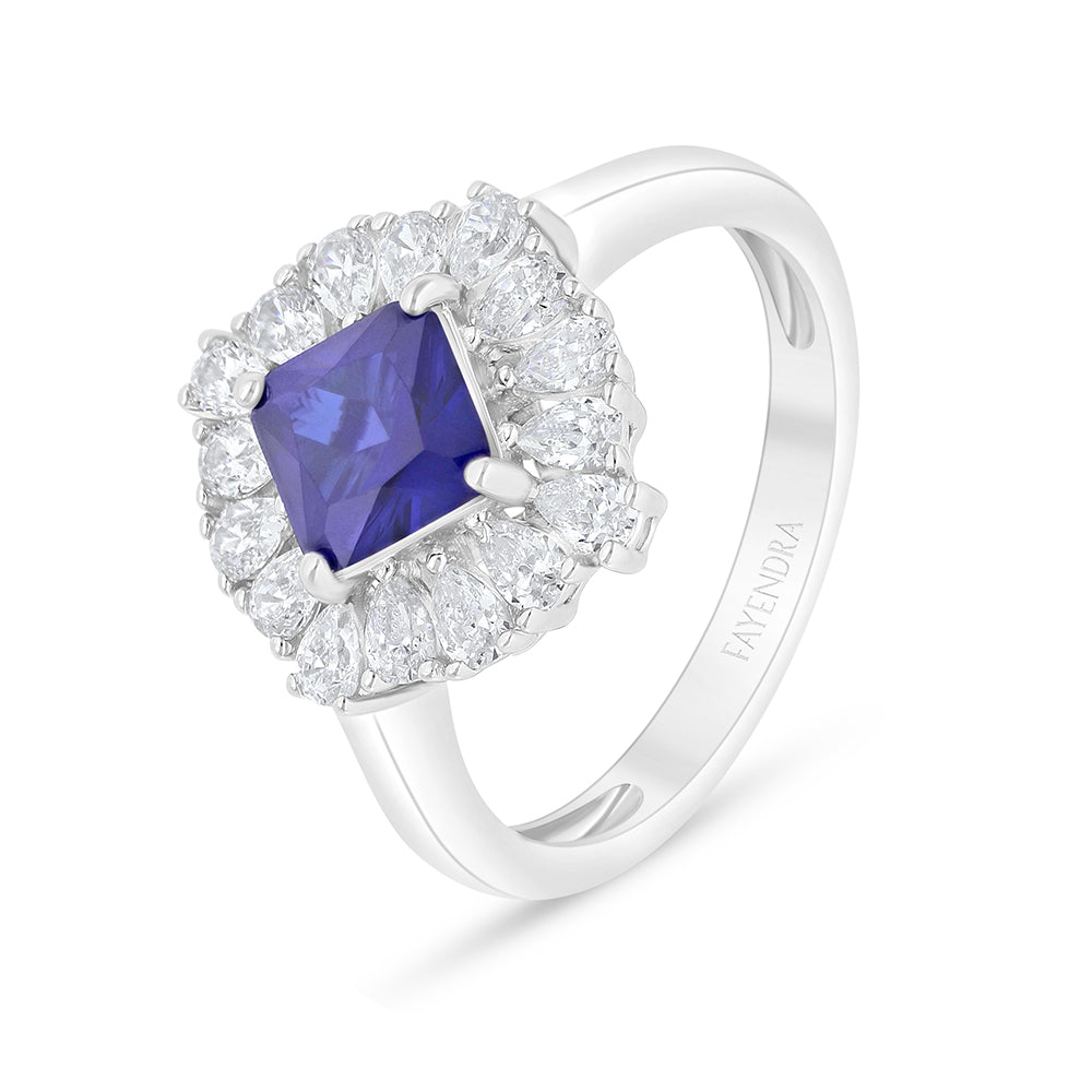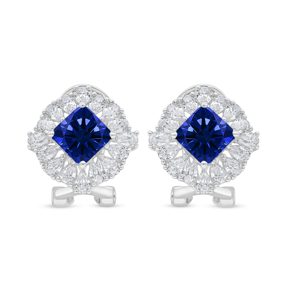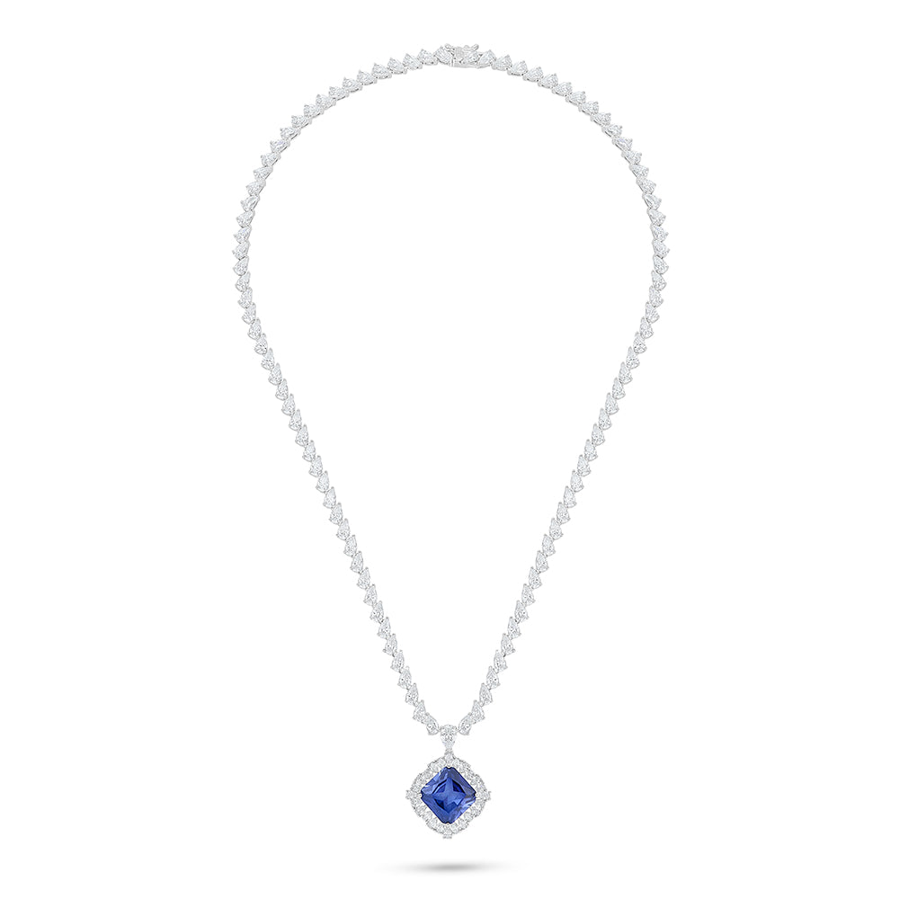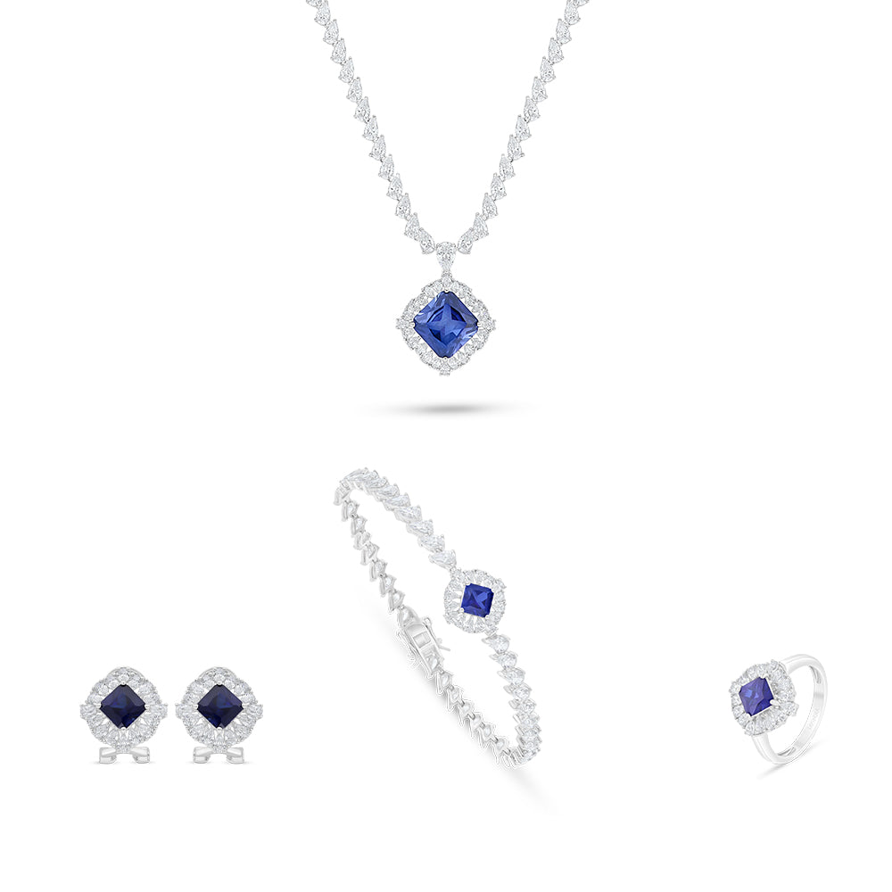 طقم من الفضة الخالصة عيار 925 مطلي روديوم و احجار زفير كروندوم و فص ابيض