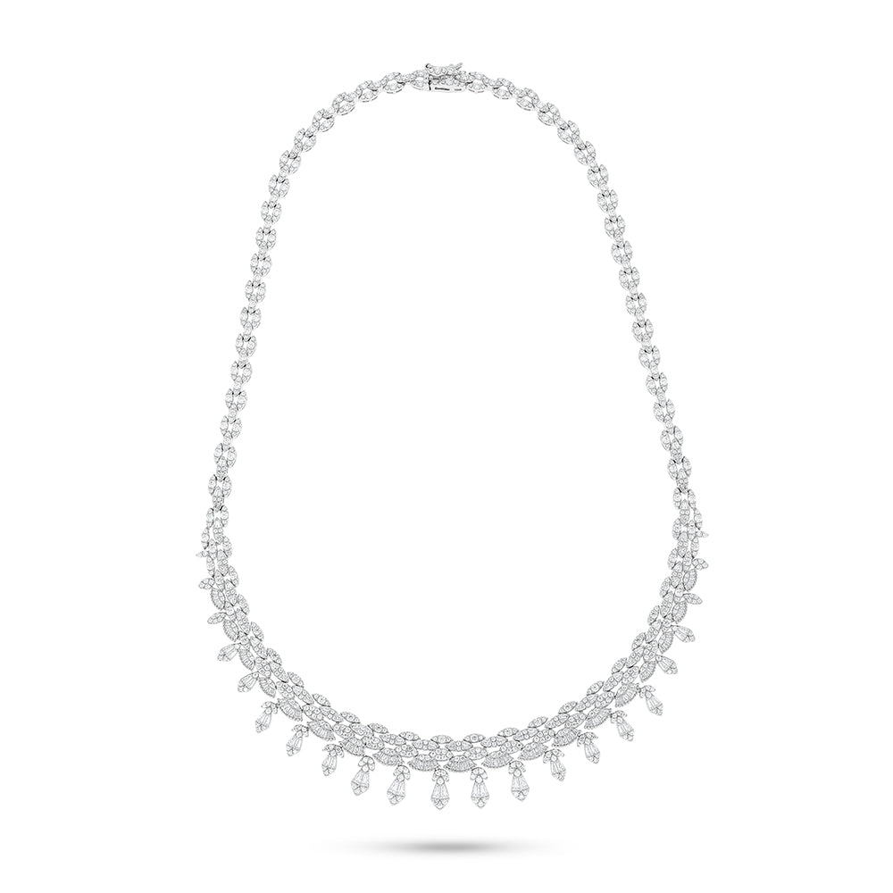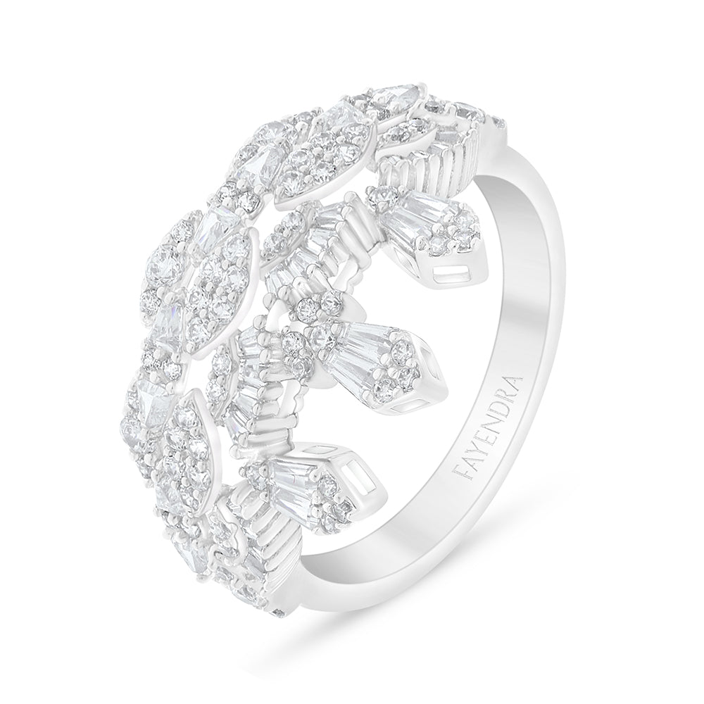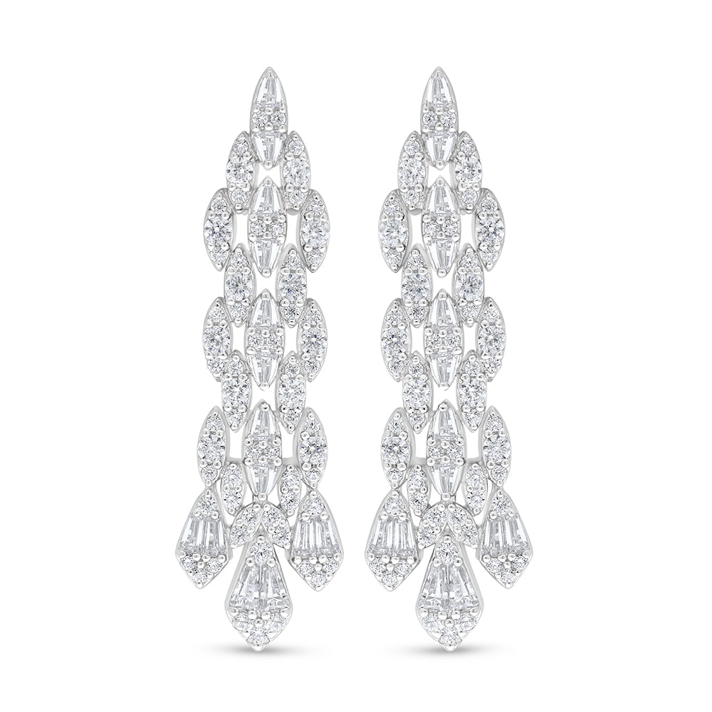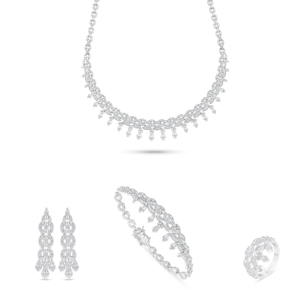 طقم من الفضة الخالصة عيار 925 مطلي روديوم مرصع فص ابيض